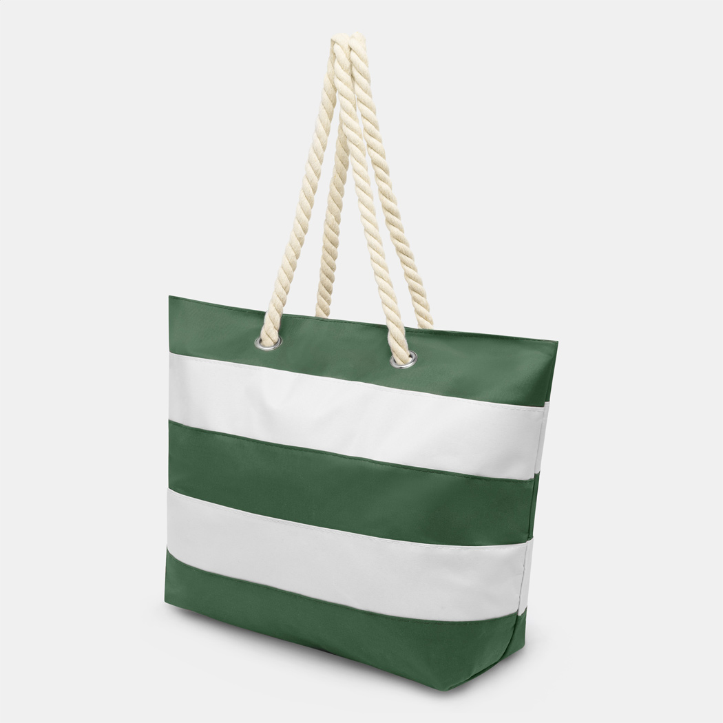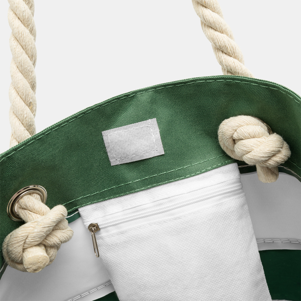Strandtasche SYLT – in maritimer Streifen-Optik: geräumiges Hauptfach mit Klettverschluss verschließbar, innen extra Reißverschluss-Tasche für Wertgegenstände oder anderes, 2 Kordel-Henkel aus Baumwolle mit Metallösen