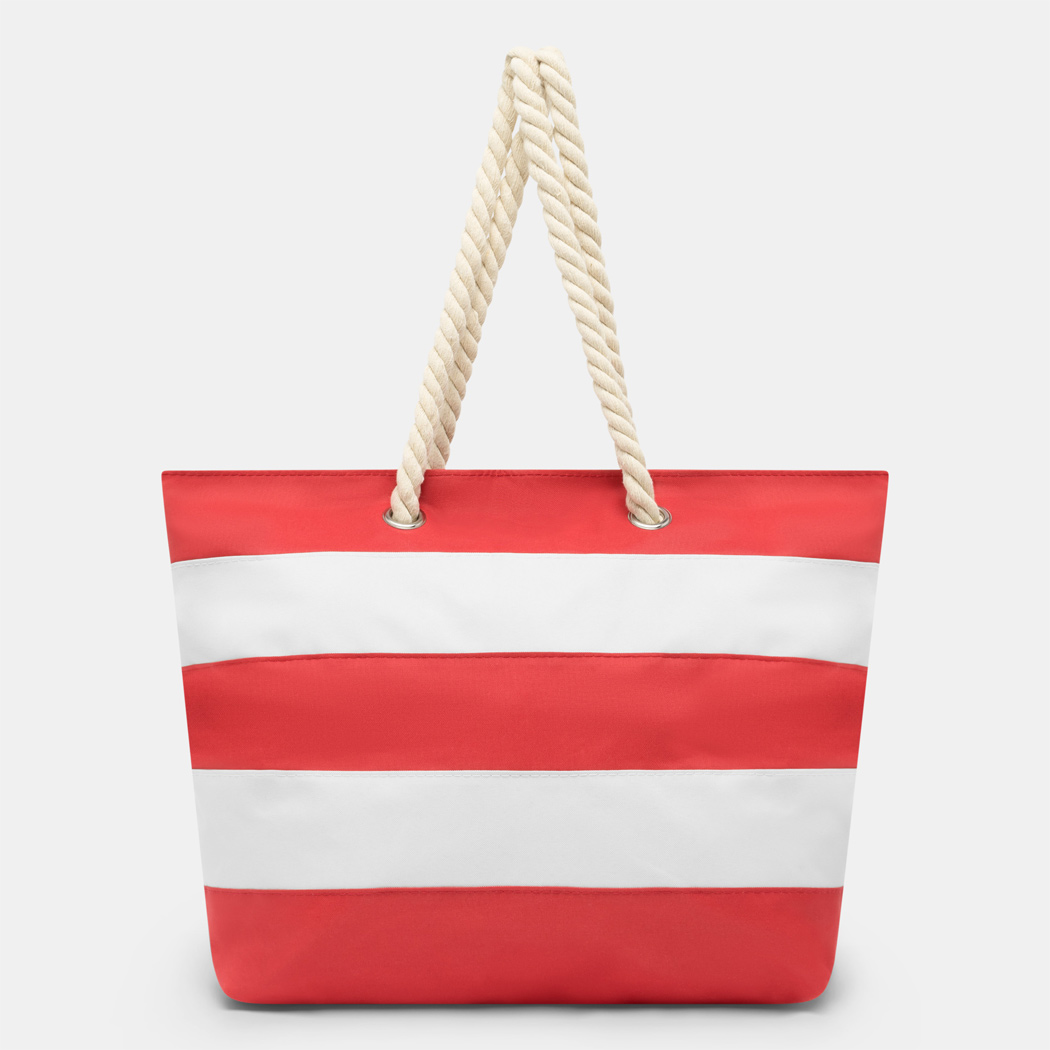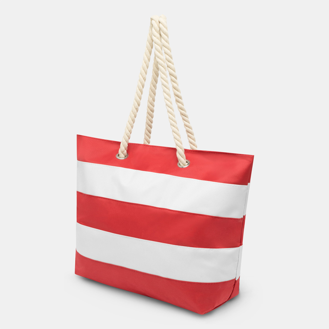 Strandtasche SYLT – in maritimer Streifen-Optik: geräumiges Hauptfach mit Klettverschluss verschließbar, innen extra Reißverschluss-Tasche für Wertgegenstände oder anderes, 2 Kordel-Henkel aus Baumwolle mit Metallösen