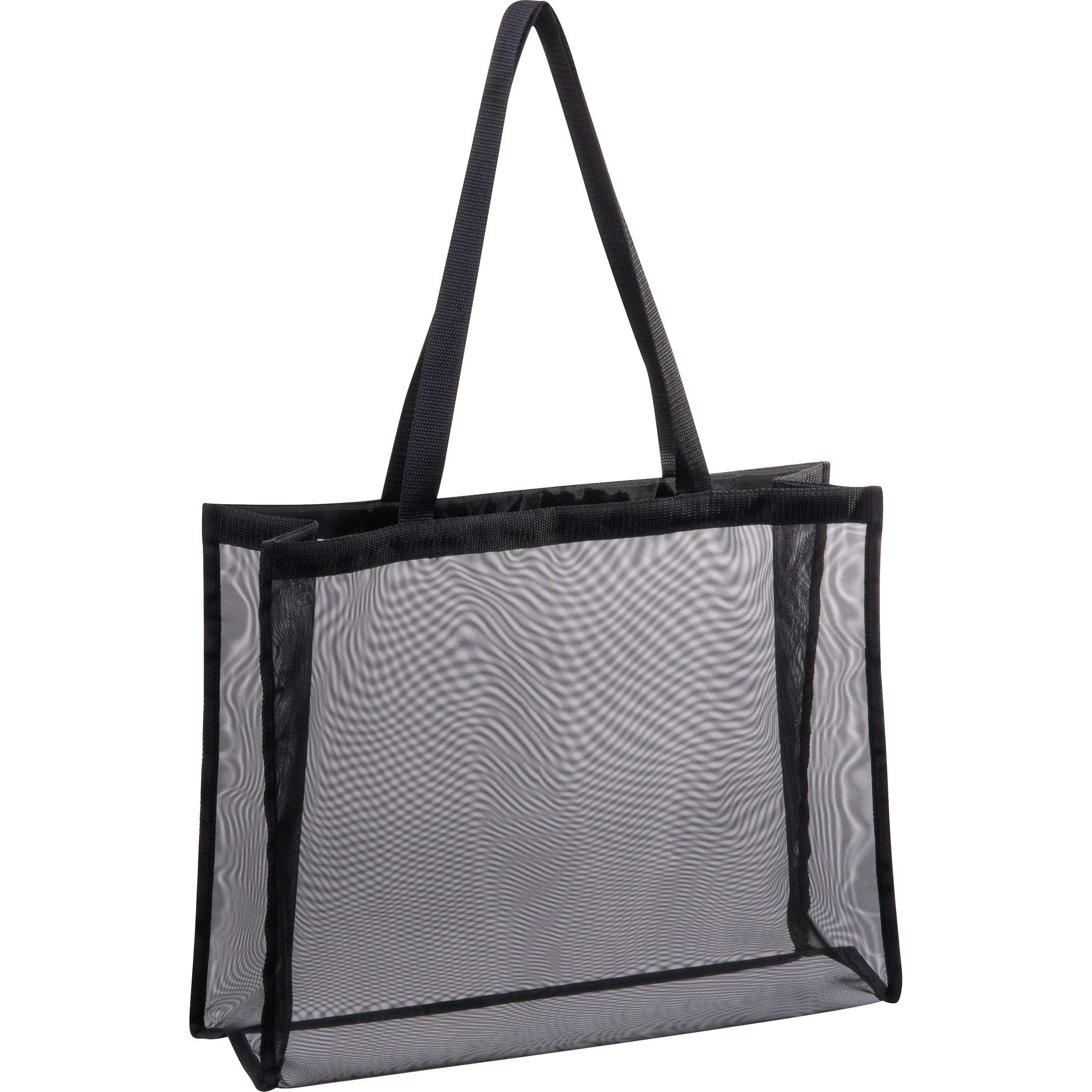 Große, transparente Strand- oder Einkaufstasche aus Polyester mit langen Tragehenkeln. Die Werbung wird auf einer Seite angebracht.