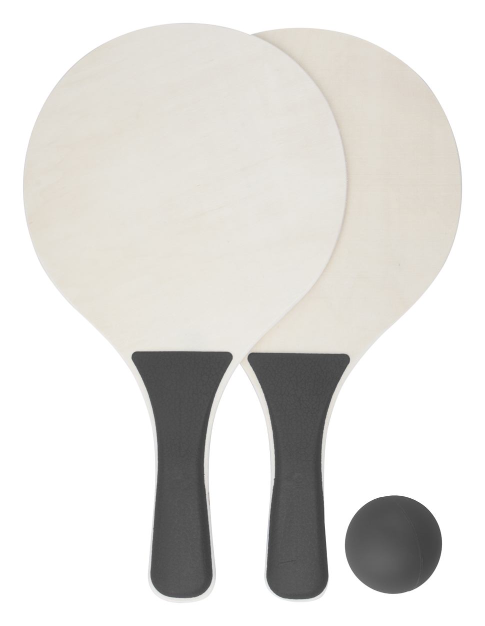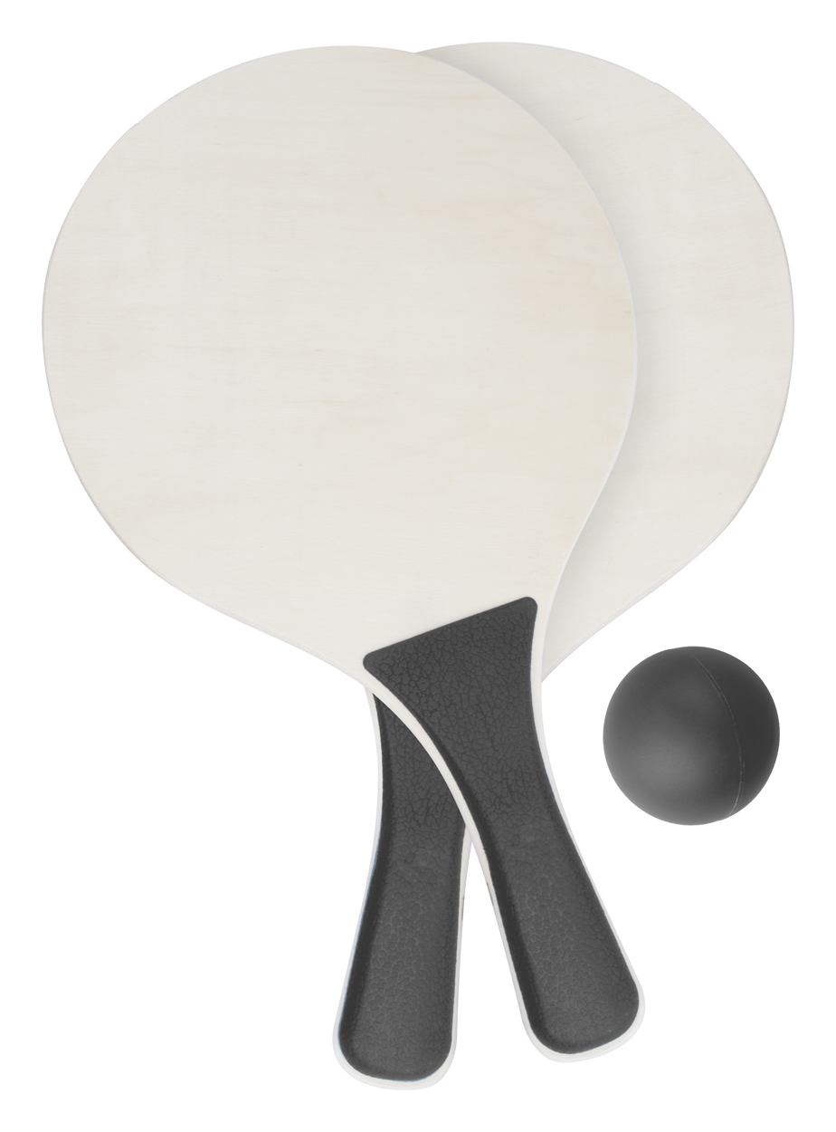 Strandtennis mit einem Ball, Schläger aus Holz, Griff aus Kunststoff.