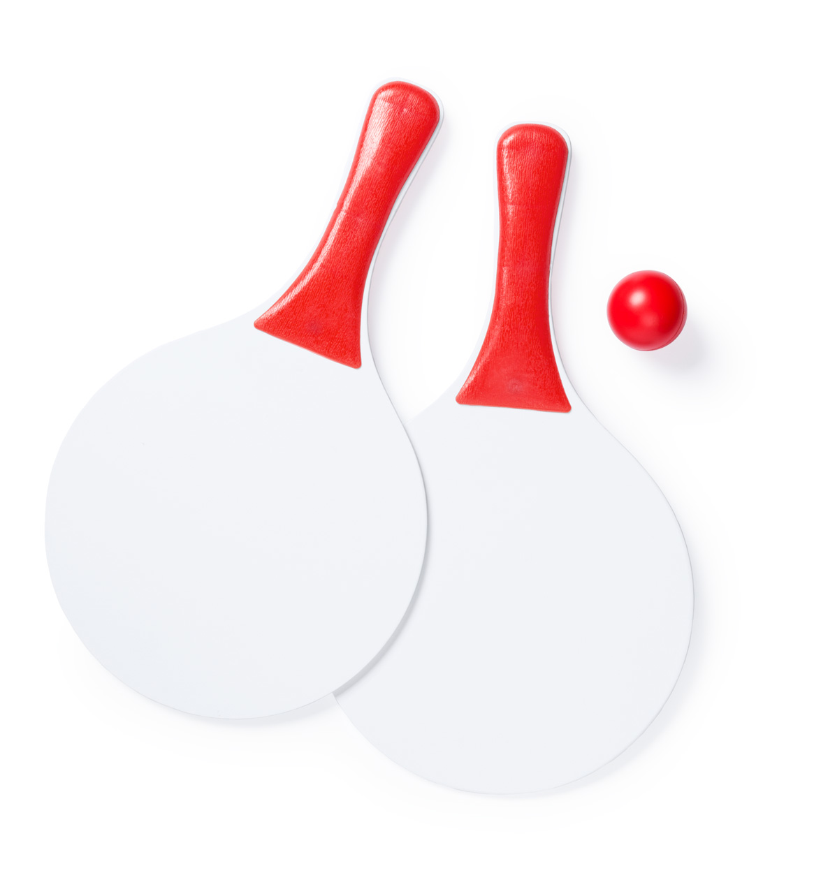 Strandtennis mit zwei Schlägern und einem Ball. Material: Holz und Kunststoff.