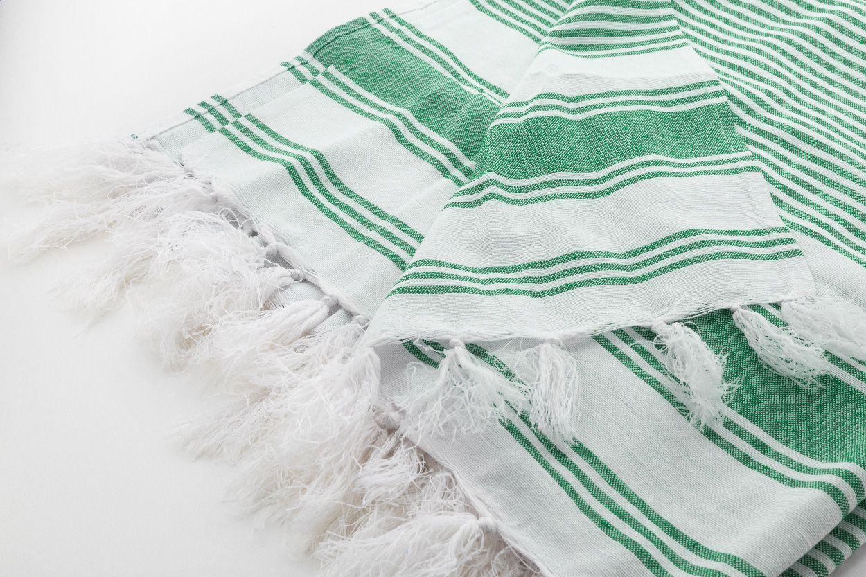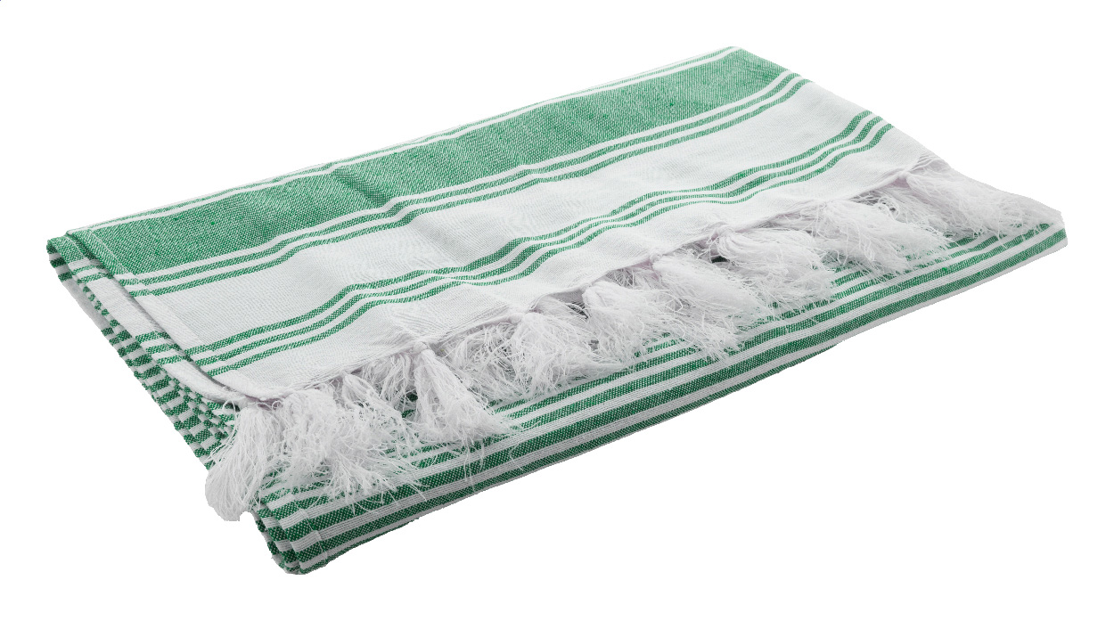 Zweifarbig gestreiftes Pareo Strandtuch aus 70% Baumwolle und 30% Polyester, 210 g / m²).