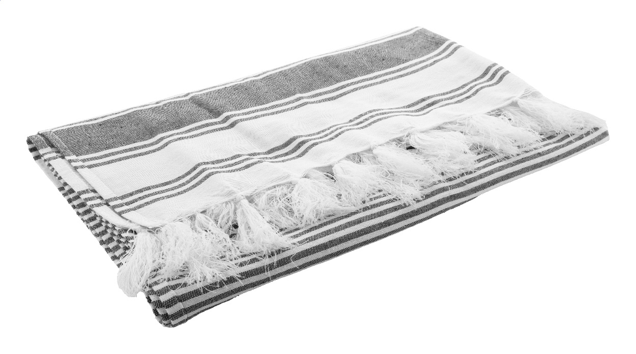 Zweifarbig gestreiftes Pareo Strandtuch aus 70% Baumwolle und 30% Polyester, 210 g / m²).