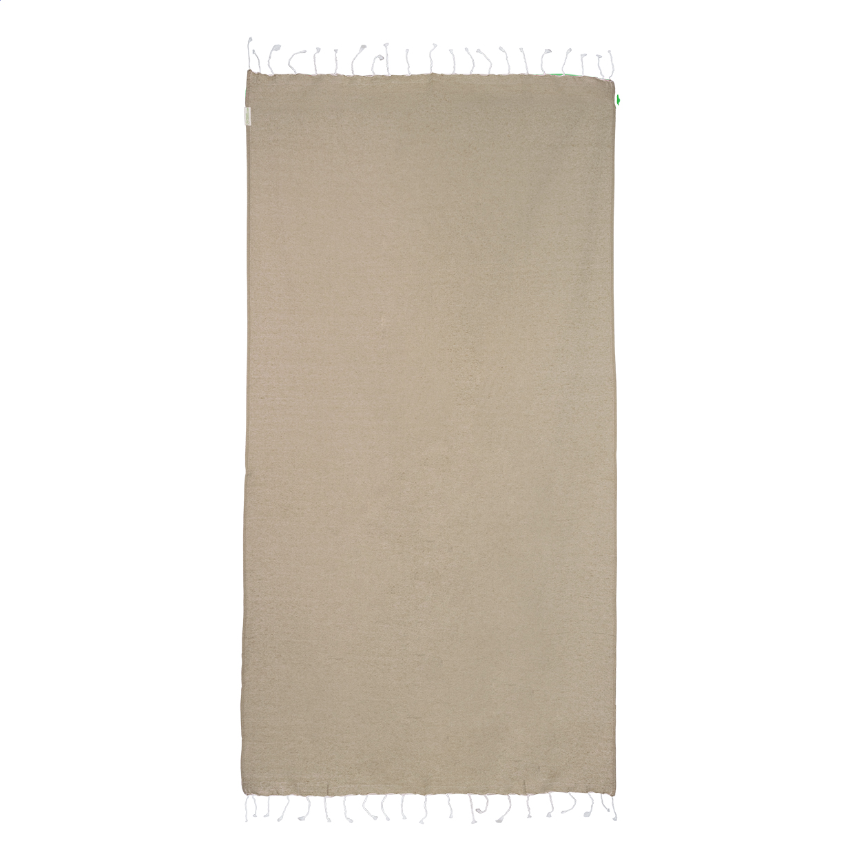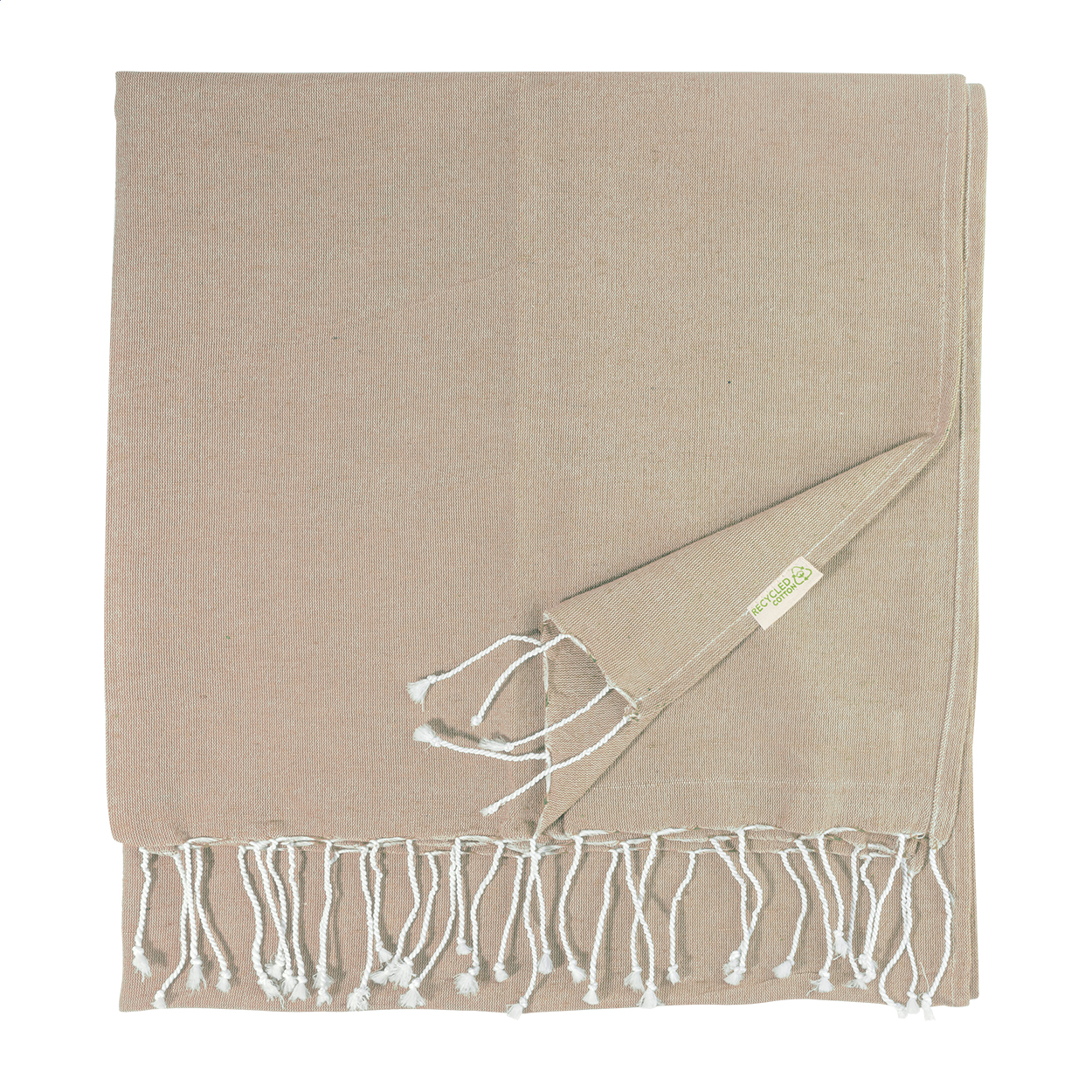 Pareo-Strandtuch. Material: 70 % recycelter Baumwolle und 30 % RPET-Polyester (180 g / m²).