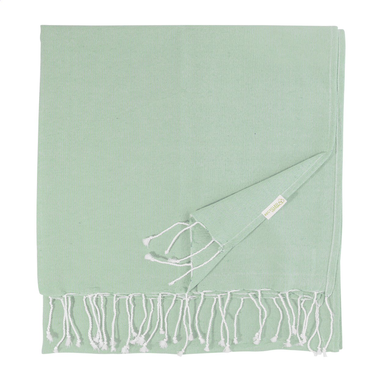 Pareo-Strandtuch. Material: 70 % recycelter Baumwolle und 30 % RPET-Polyester (180 g / m²).