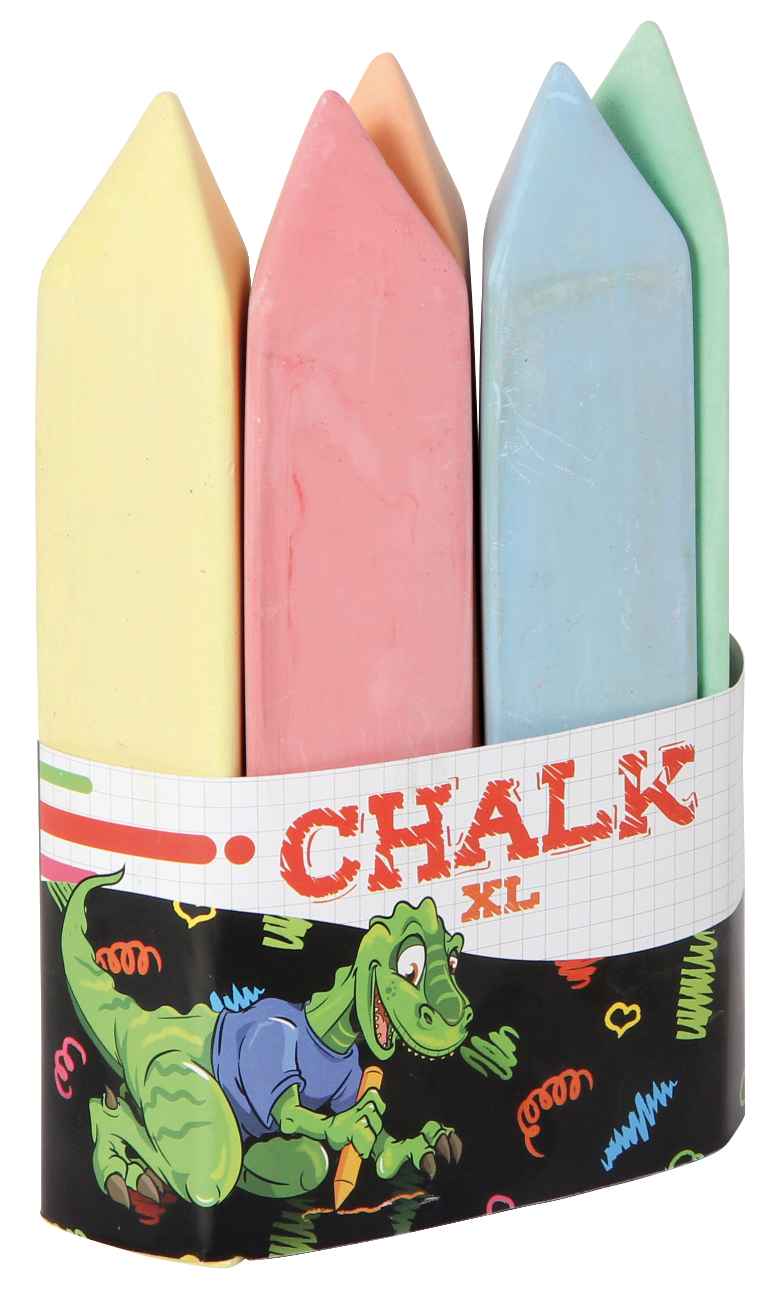 Extra große und griffige Straßenmalkreiden. Fünf verschiedene Farben im Set.