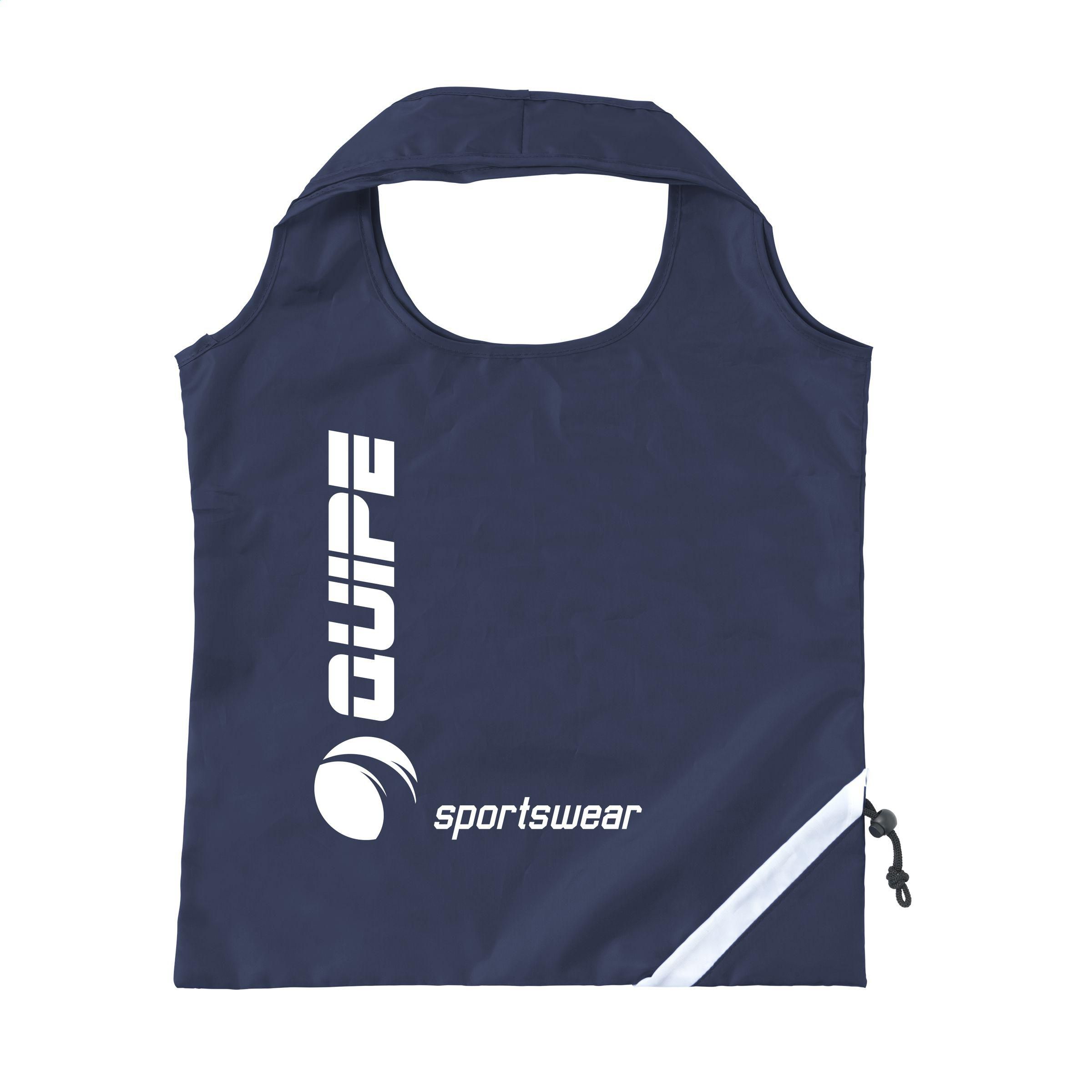 Faltbare Einkaufstasche aus strapazierfähigem Polyester. Mit doppeltem Tragegurt. Im Handumdrehen von Beutel zur Tasche und umgekehrt. Maße gefaltet: 6 x 2,5 x 12,5 cm. Fassungsvermögen ca. 8 Liter.