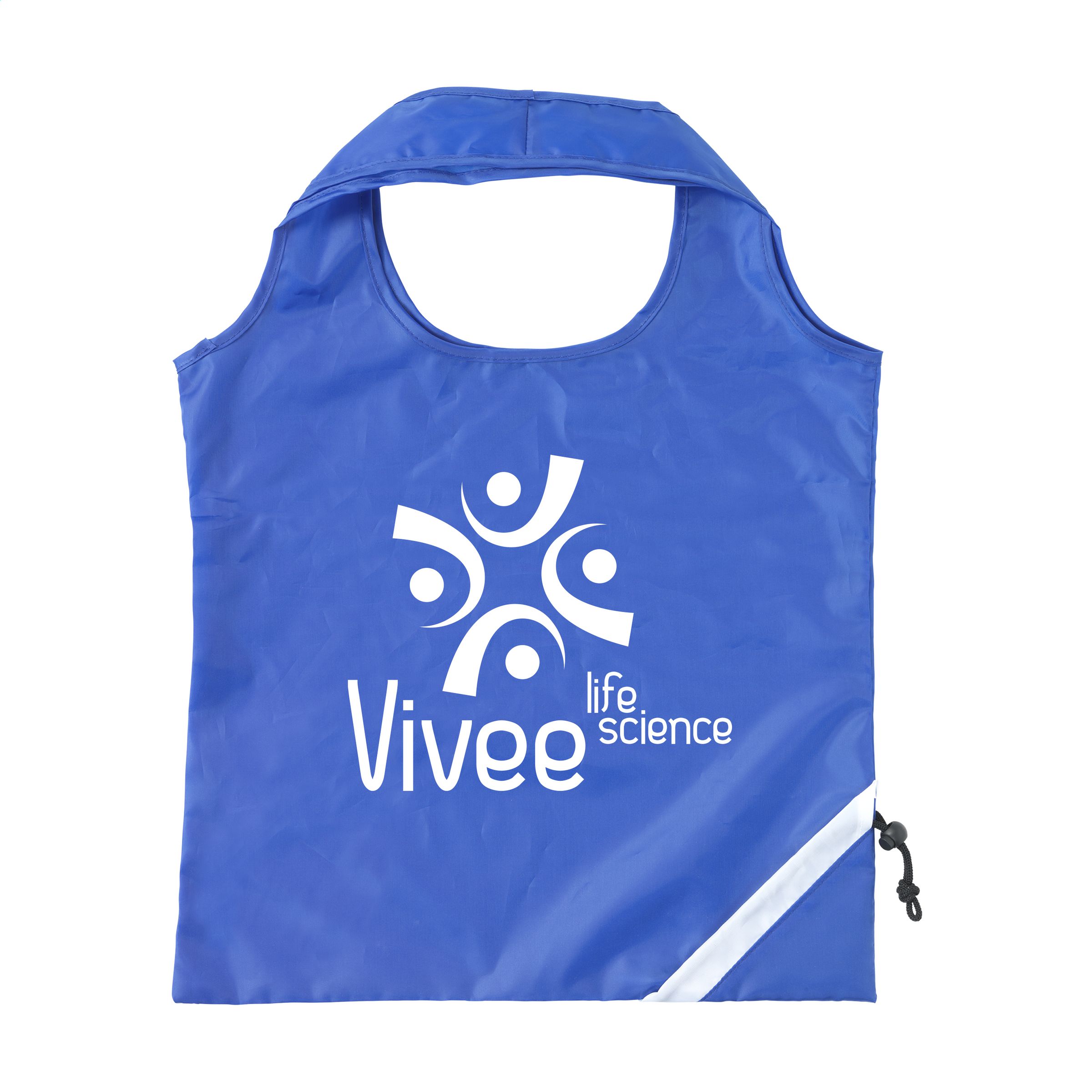 Faltbare Einkaufstasche aus strapazierfähigem Polyester. Mit doppeltem Tragegurt. Im Handumdrehen von Beutel zur Tasche und umgekehrt. Maße entfaltet: 42 x 38 cm.