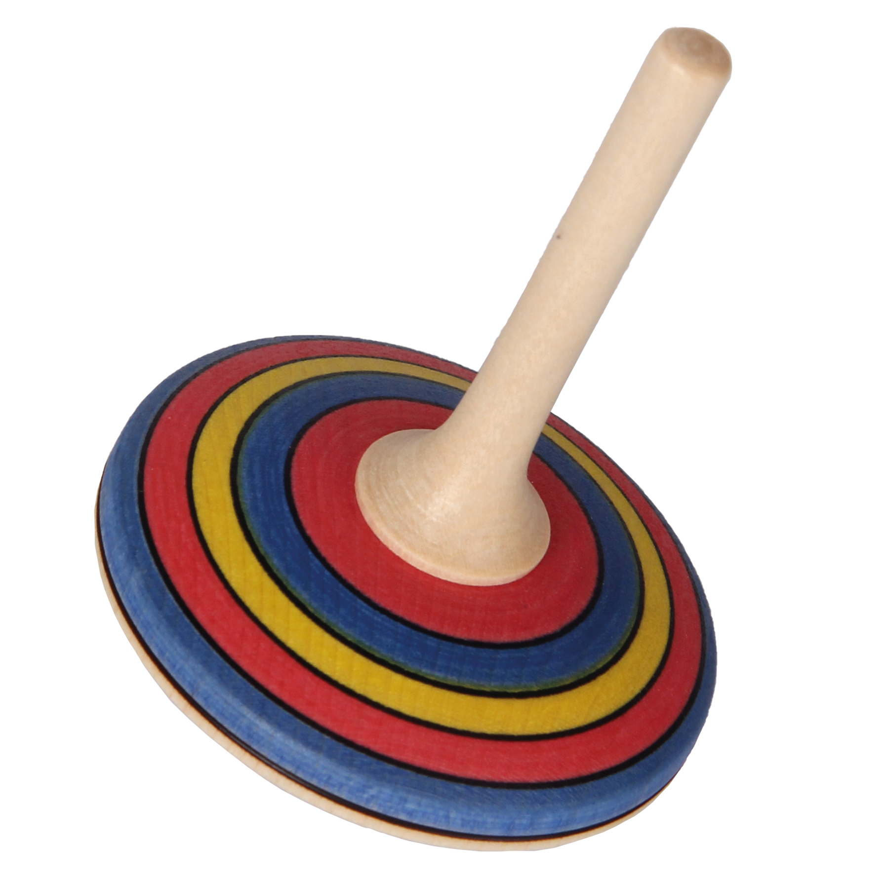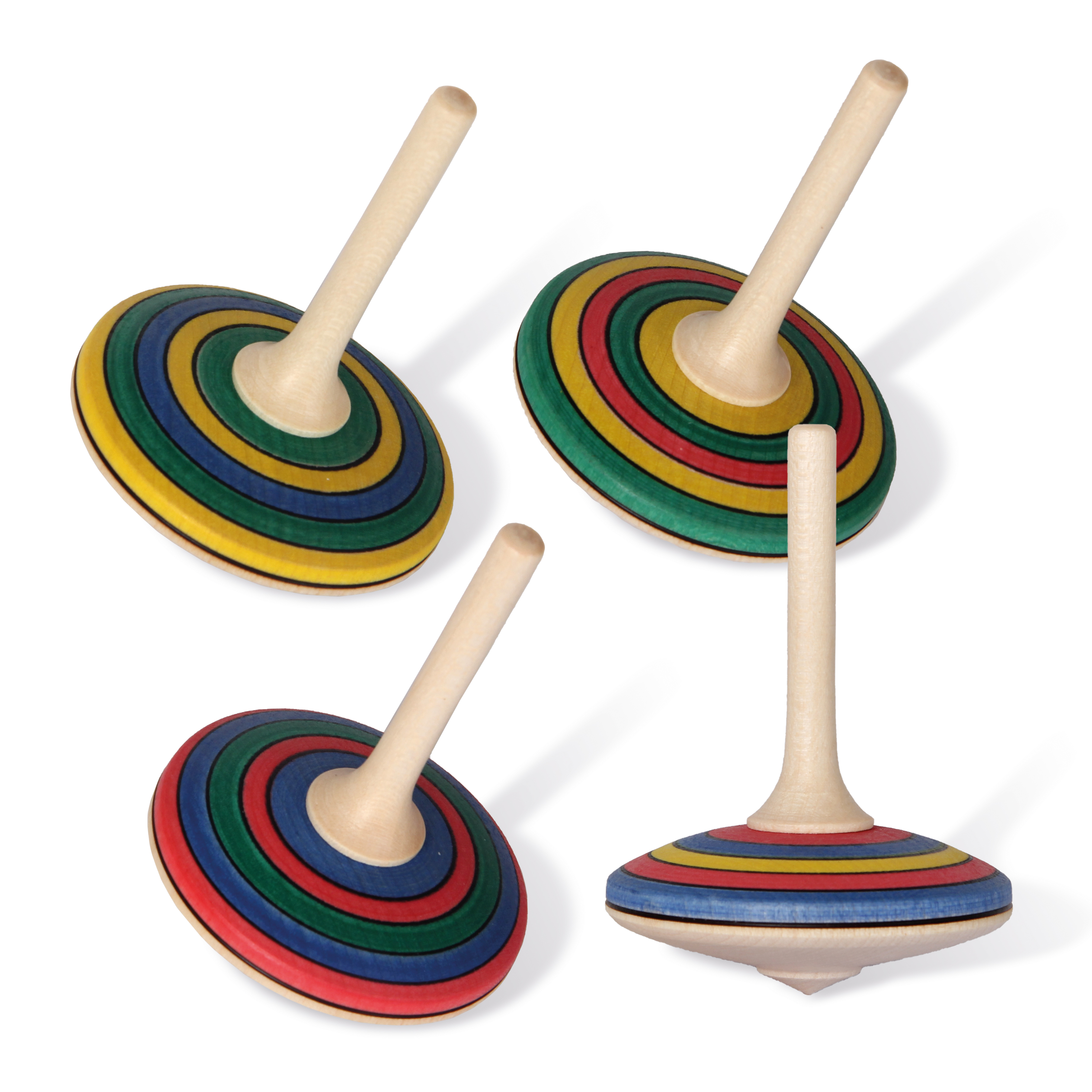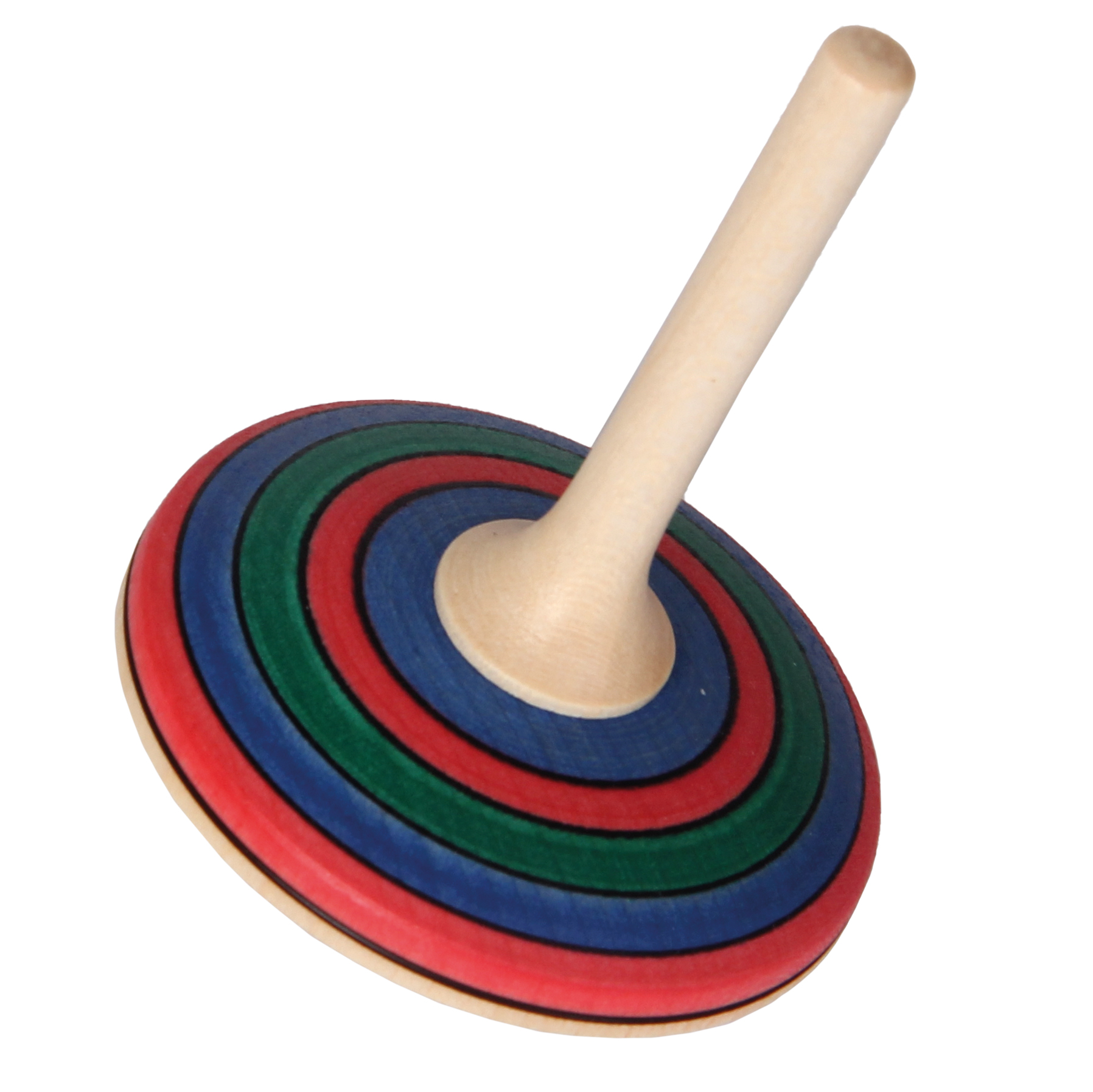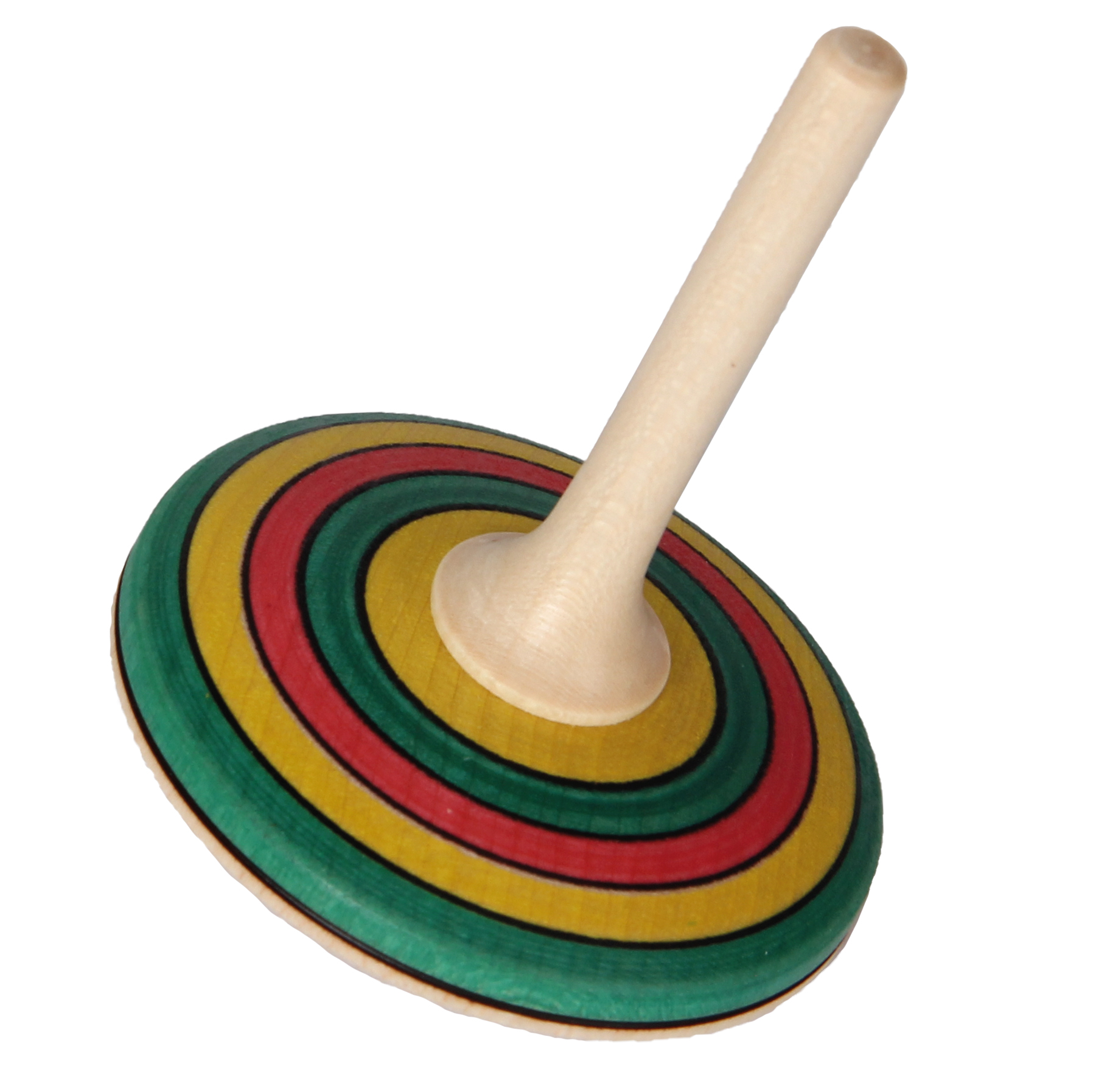 Durch den langen Stiel als Finger- oder Zweihandkreisel zu benutzen. Gefertigt aus Ahornholz und in 4 Farbdesigns bemalt.