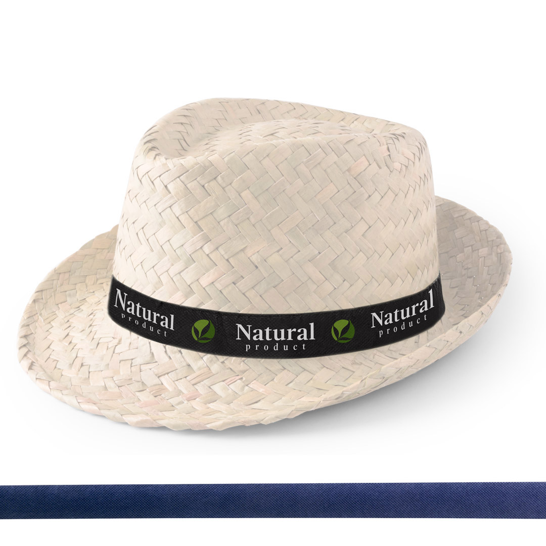 Artikelname: Strohhut Zelio (weiss) mit bedrucktem Hutband