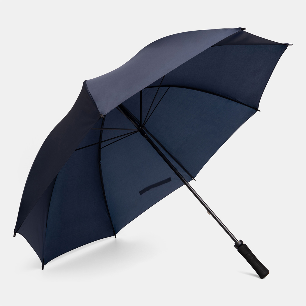 Sturmschirm TORNADO: Fiberglasstock, Doppelmetallspeichen und Rückholautomatik-Feder, Kunststofftips, Moosgummigriff, Polyester-Bespannung, Schließband mit Klettverschluss