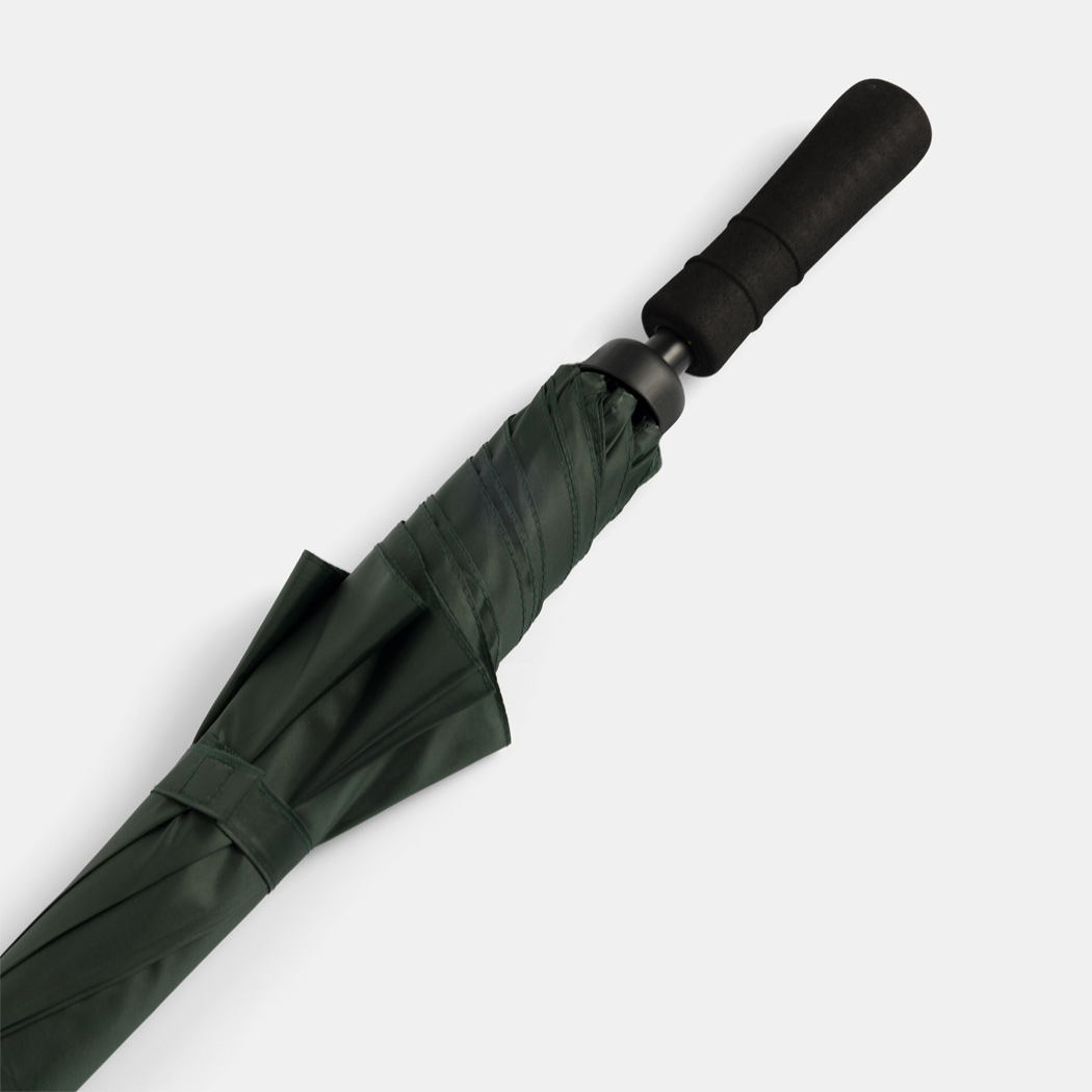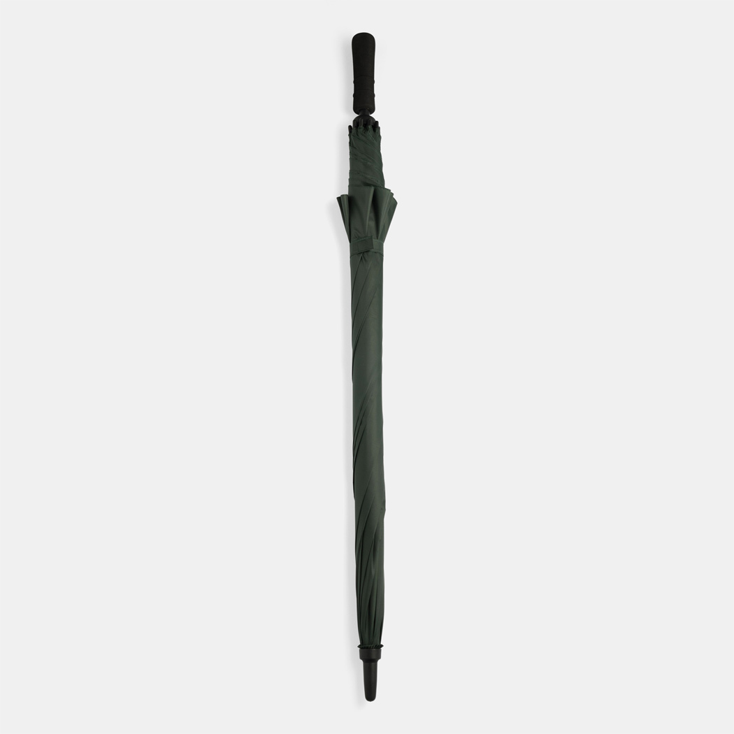Sturmschirm TORNADO: Fiberglasstock, Doppelmetallspeichen und Rückholautomatik-Feder, Kunststofftips, Moosgummigriff, Polyester-Bespannung, Schließband mit Klettverschluss