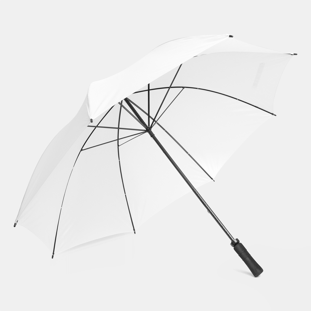 Sturmschirm TORNADO: Fiberglasstock, Doppelmetallspeichen und Rückholautomatik-Feder, Kunststofftips, Moosgummigriff, Polyester-Bespannung, Schließband mit Klettverschluss