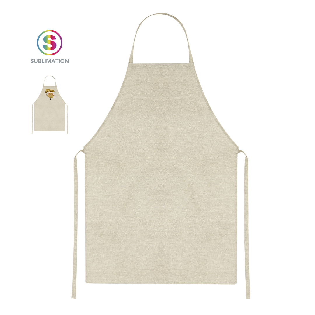 Schürze aus weichem und strapazierfähigem Polyester, ideal für die Personalisierung durch Sublimationsdruck.