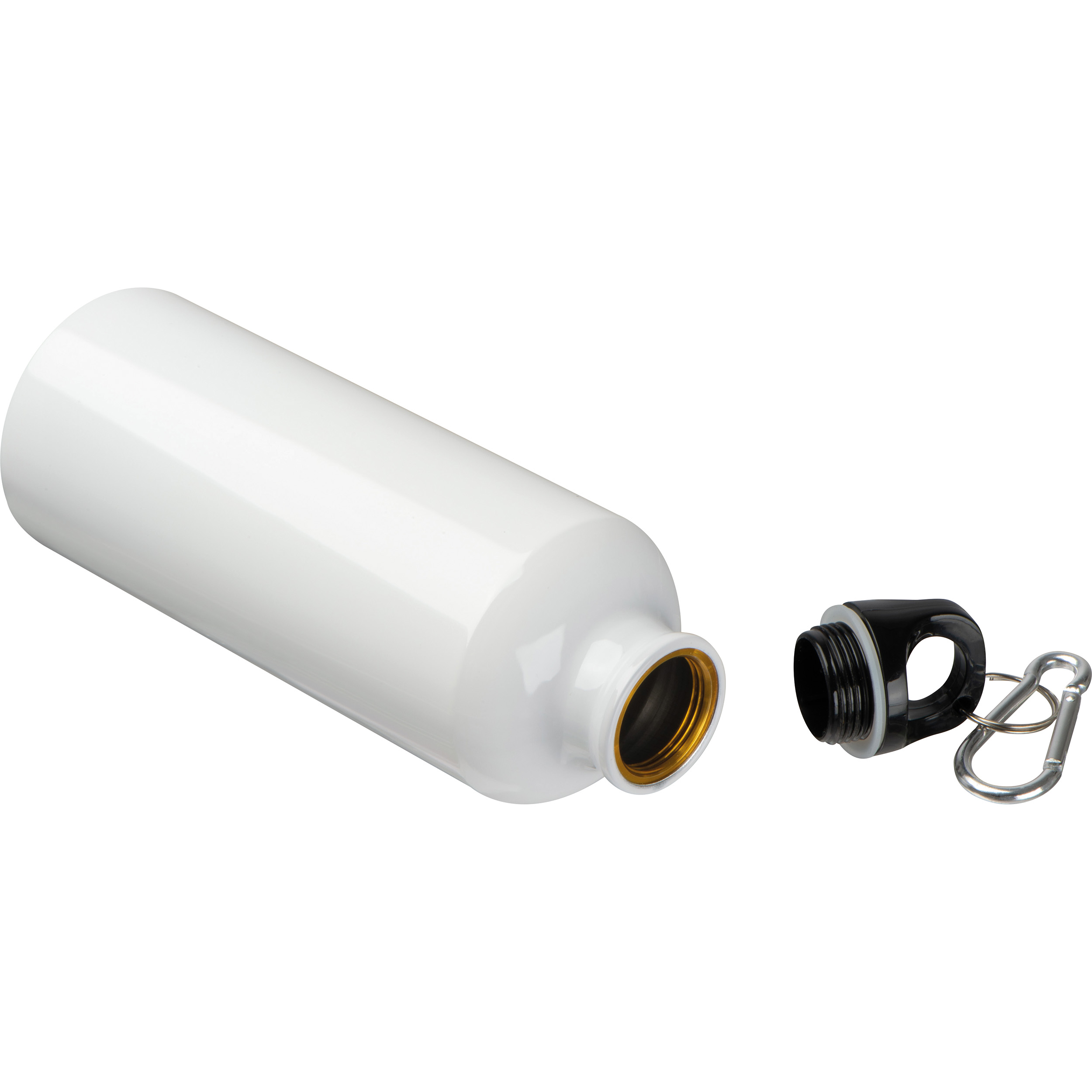 Sublimations-Trinkflasche aus Aluminium mit einem Karabinerhaken und einem Füllvermögen von 400 ml. Ihre Werbung bringen wir mittels Sublimationsdruck rundherum auf der Flasche an.
