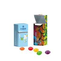 Wer eine aufmerksamkeitsstarke Präsentation sucht, kann auf Präsent- oder Schiebeboxen setzen. Diese Varianten wirken hochwertiger und bieten mehr Fläche für aufwendige Grafiken, Farbverläufe oder sogar fotorealistische Druckmotive. Besonders in Verbindung mit edlen Füllungen wie Schokolade, Marzipan oder Lakritz entstehen so Werbepräsente, die lange im Gedächtnis bleiben.