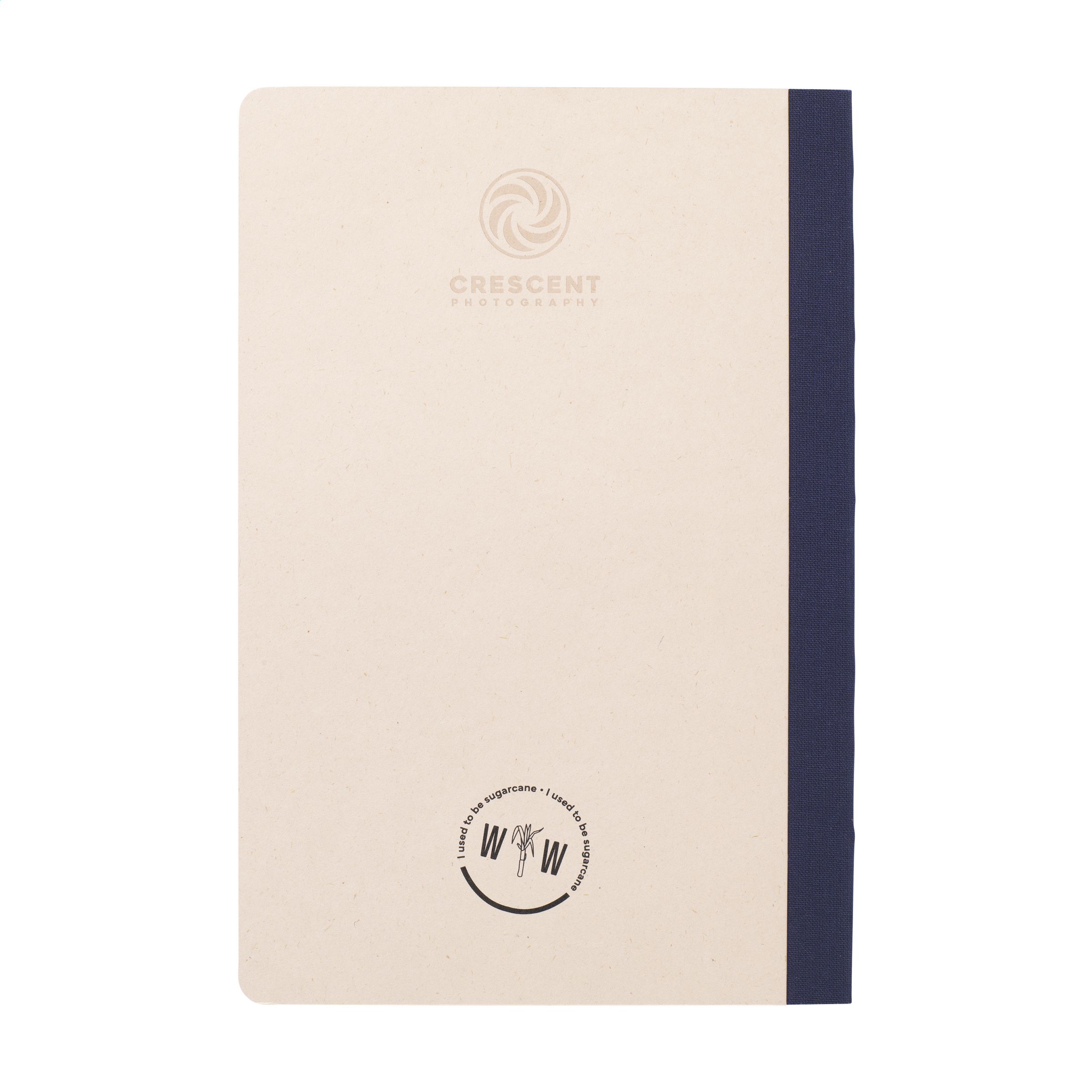 WoW! Exklusives Notizbuch im A5-Format, hergestellt aus recycelten Abfällen der Zuckerrohrpflanze. Mit Hardcover und 80 Blatt/160 Seiten liniertem Papier (100 g / m²). Der Einband und das Papier sind FSC Mix zertifiziert. Das Papier, in dem kleine Fasern sichtbar sind, hat eine schöne hellbraune Farbe. Dabei wird Wert auf die Verwendung natürlicher Materialien gelegt. Nach der Ernte verbleiben die Wurzeln der Pflanze im Boden und die Stängel und Blätter werden zu einem Reststoff verarbeitet, der zur Herstellung von Bio-Kunststoff verwendet wird. Eine Zuckerrohrpflanze entzieht der Luft während ihres Wachstums CO2 und kann bis zu 10 Jahre alt werden.