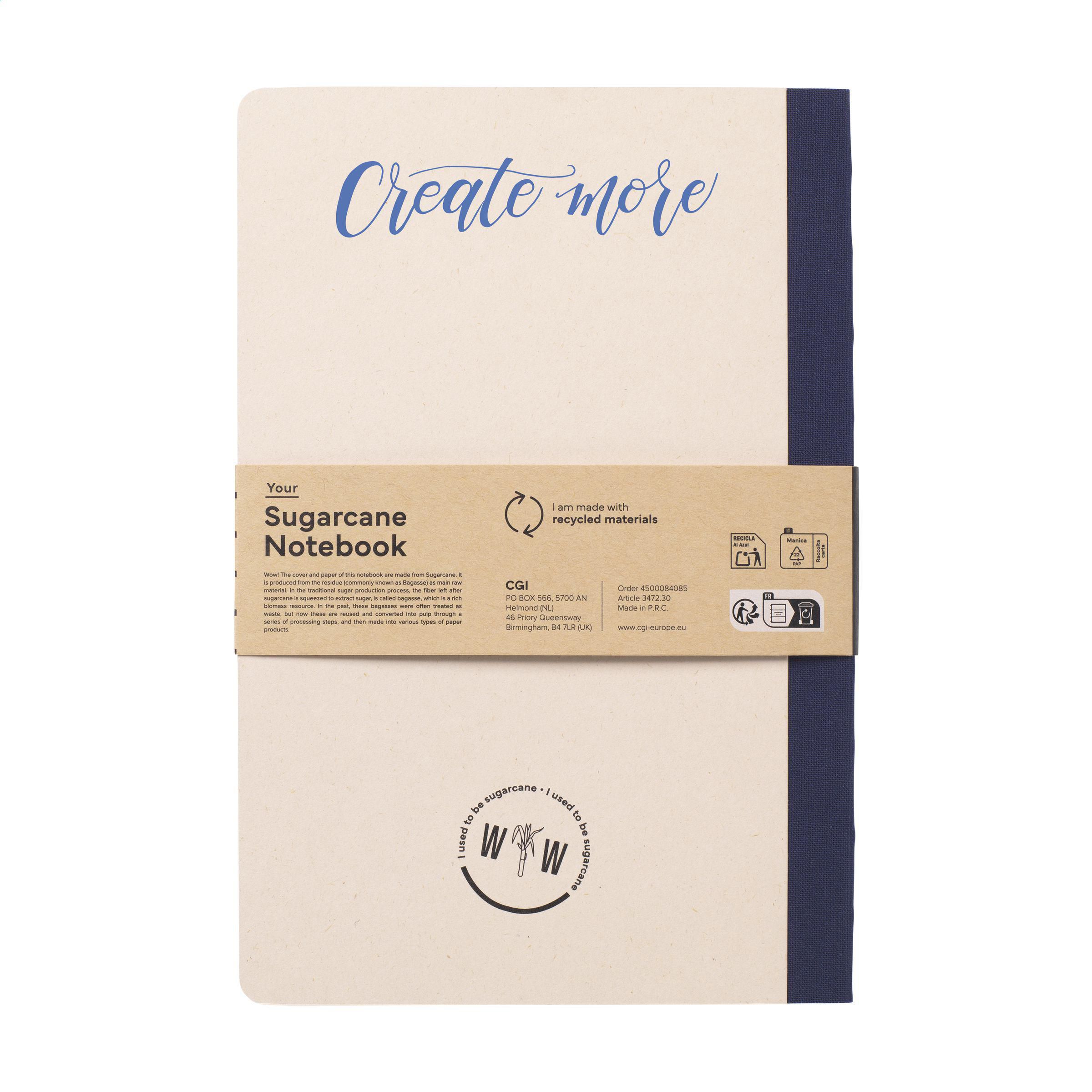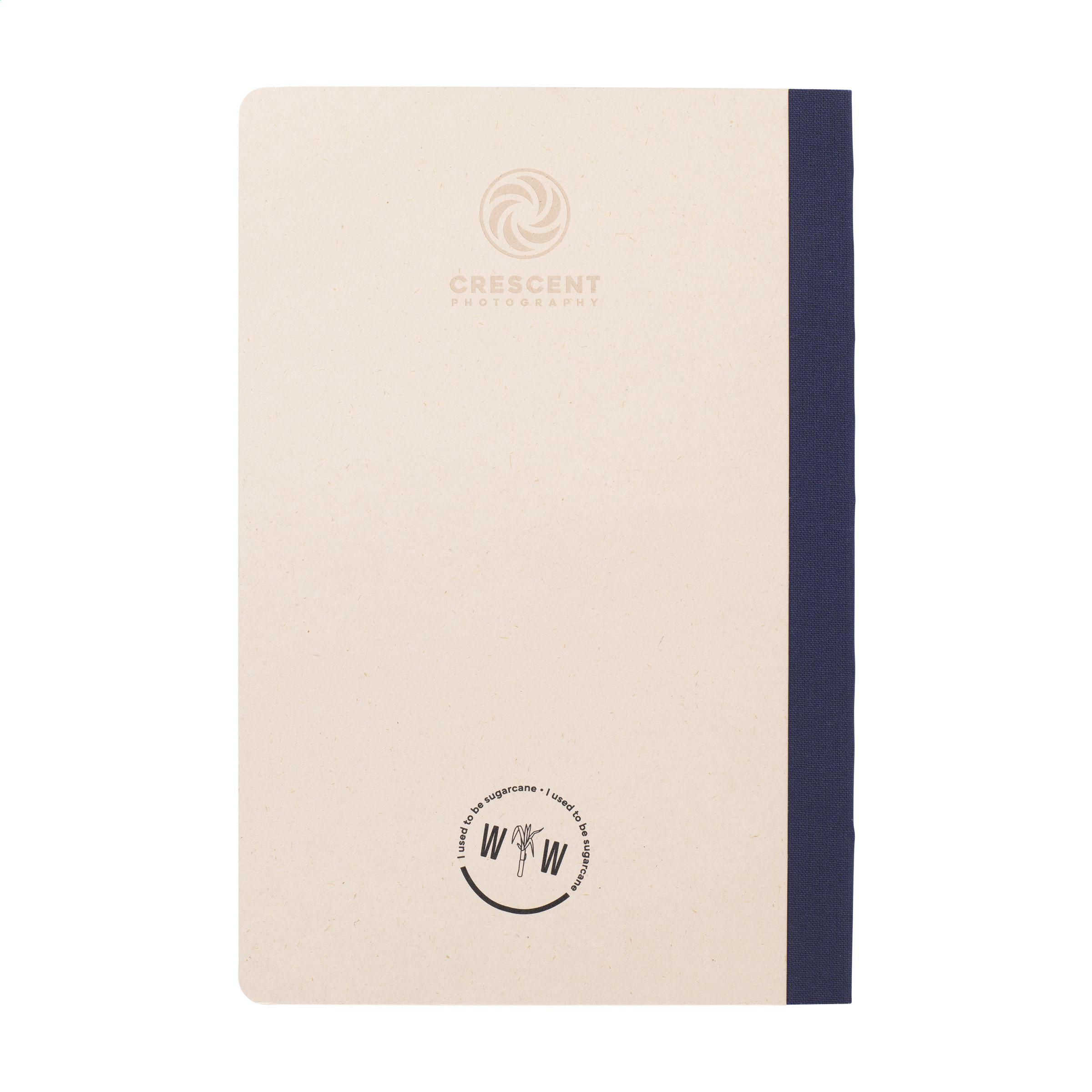Exklusives Notizbuch im A5-Format, hergestellt aus recycelten Abfällen der Zuckerrohrpflanze. Mit Hardcover und 80 Blatt/160 Seiten liniertem Papier (100 g/m²). Der Einband und das Papier sind FSC Mix zertifiziert. Das Papier, in dem kleine Fasern sichtbar sind, hat eine schöne hellbraune Farbe. Dabei wird Wert auf die Verwendung natürlicher Materialien gelegt. Nach der Ernte verbleiben die Wurzeln der Pflanze im Boden und die Stängel und Blätter werden zu einem Reststoff verarbeitet, der zur Herstellung von Bio-Kunststoff verwendet wird. Eine Zuckerrohrpflanze entzieht der Luft während ihres Wachstums CO2 und kann bis zu 10 Jahre alt werden.