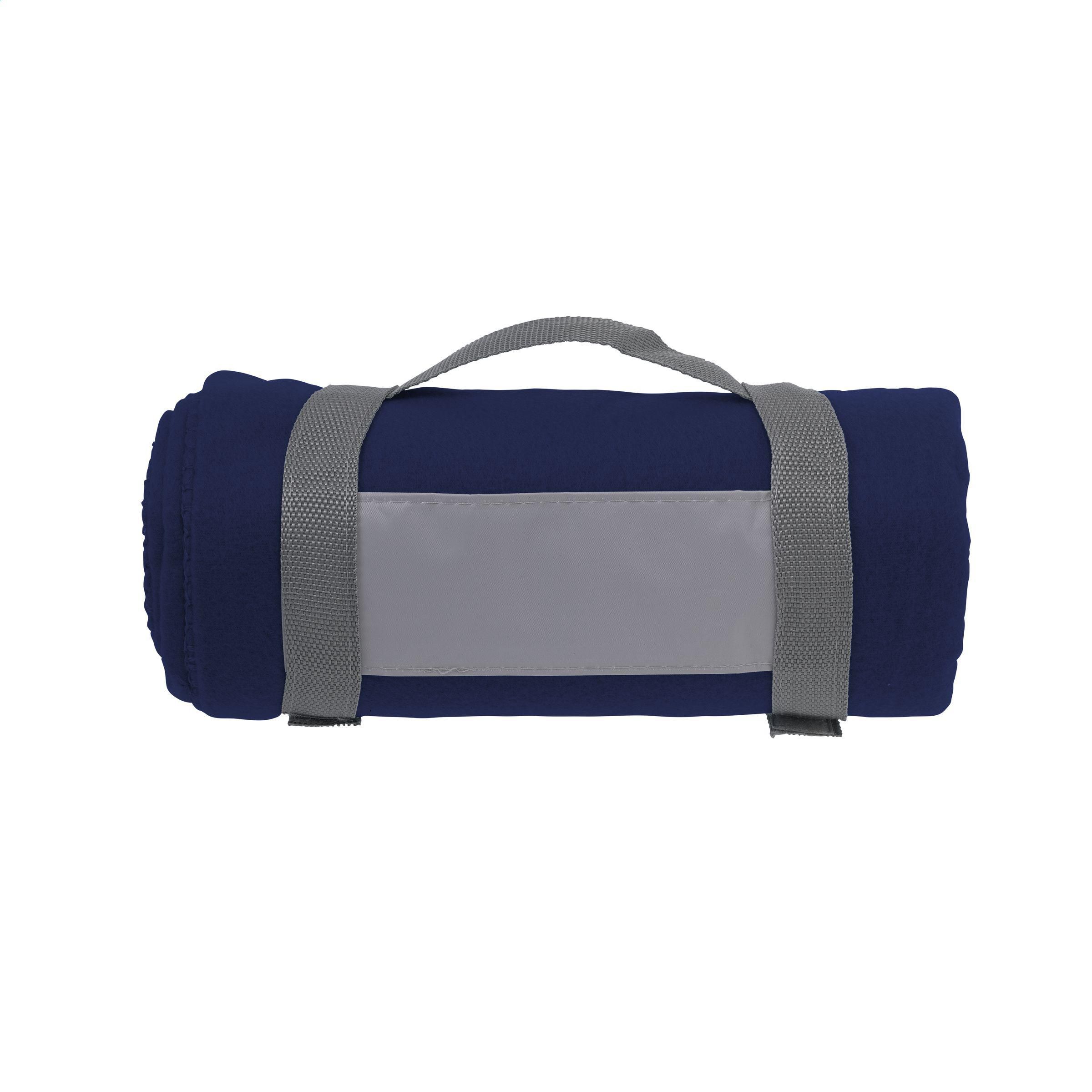 Decke aus 100% Fleece (180 g/m²). Mit praktischer Trageschlaufe. Maße aufgeklappt 150 x 120 cm.