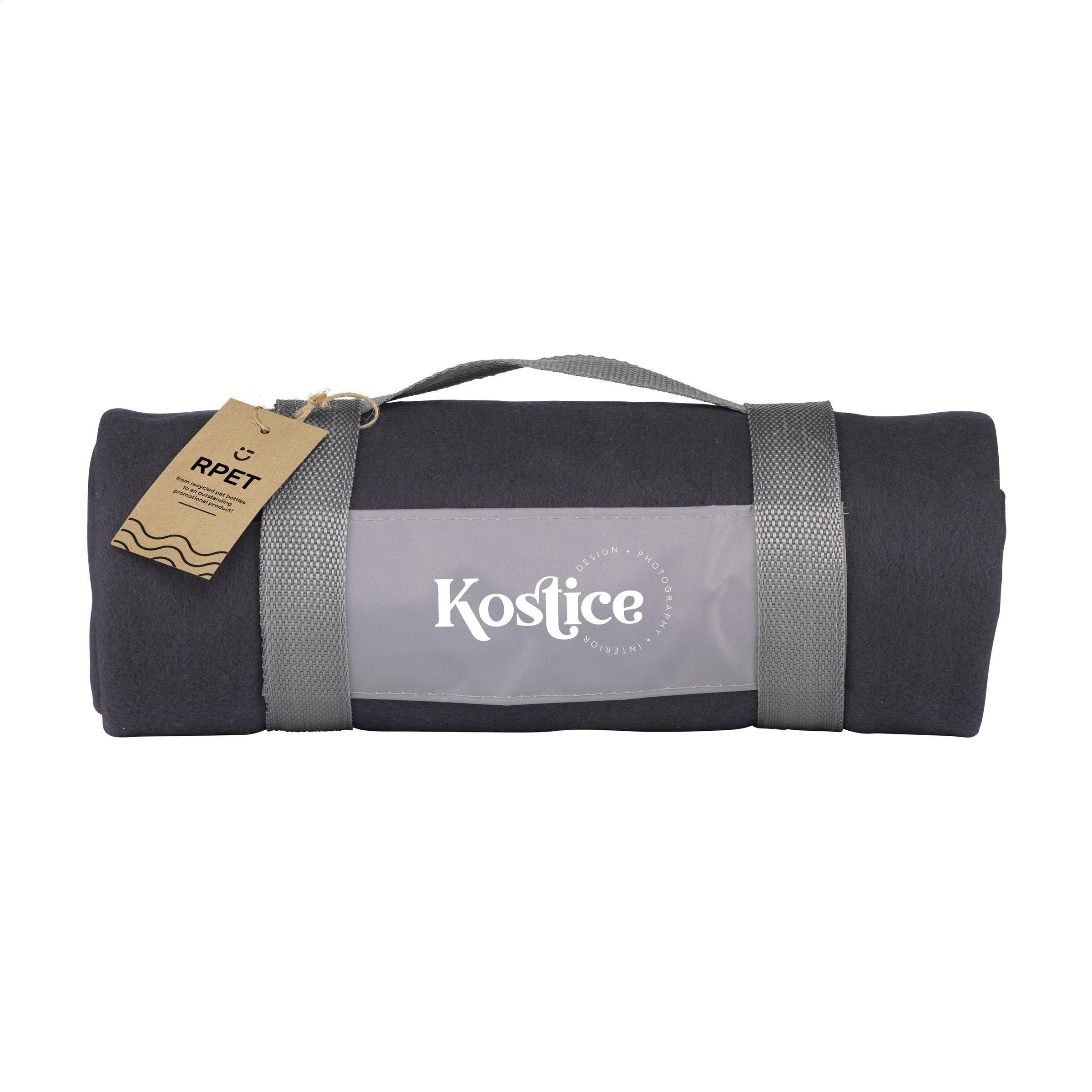 Fleecedecke aus 30% Polyester und 70% RPET-Polyester (180 g/m²). RPET-Polyester ist Material aus recycelten PET-Flaschen und recycelten Textilfasern. Mit praktischer Trageschlaufe. Maße aufgeklappt 150 x 120 cm.