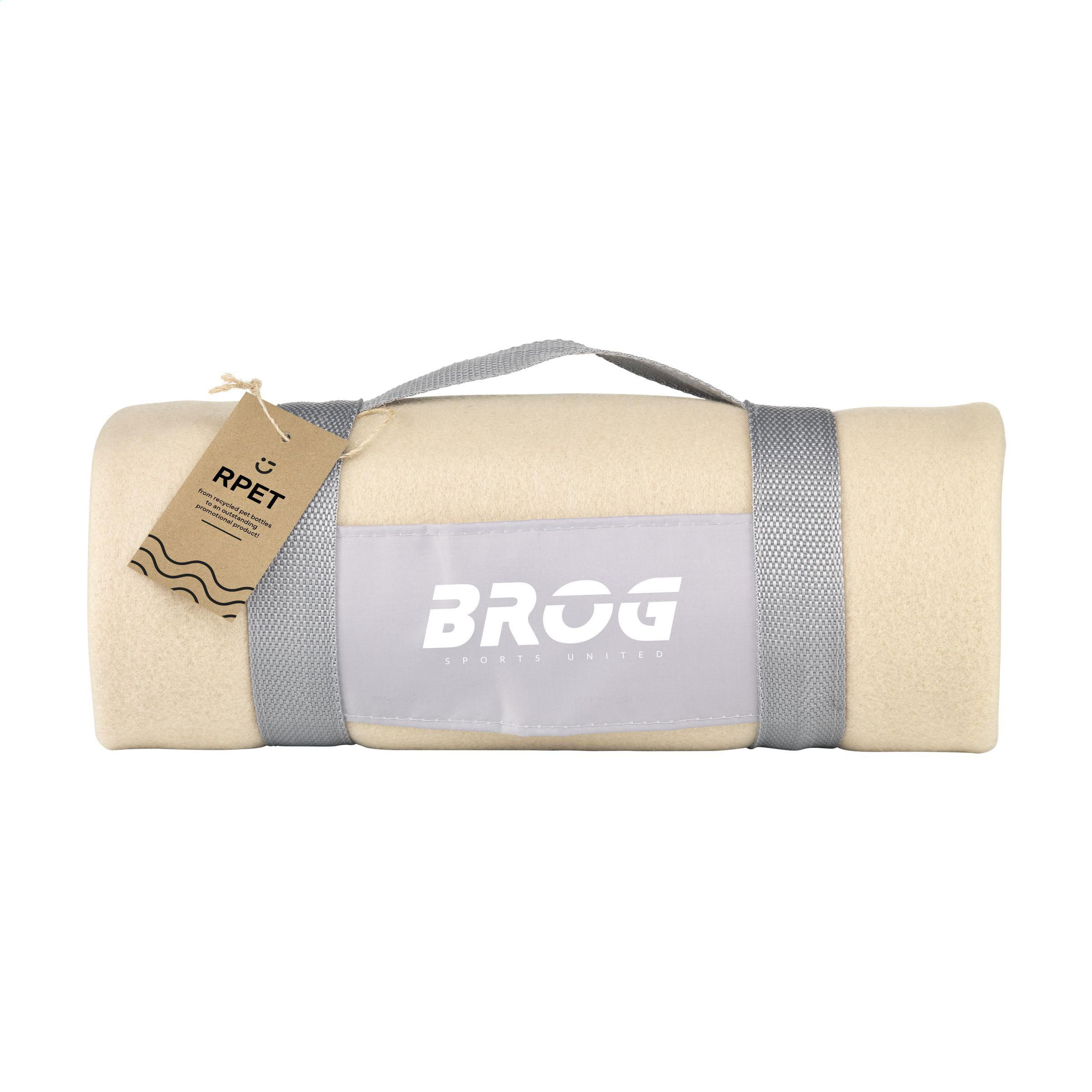 Fleecedecke aus 30% Polyester und 70% RPET-Polyester (180 g/m²). RPET-Polyester ist Material aus recycelten PET-Flaschen und recycelten Textilfasern. Mit praktischer Trageschlaufe. Maße aufgeklappt 150 x 120 cm.