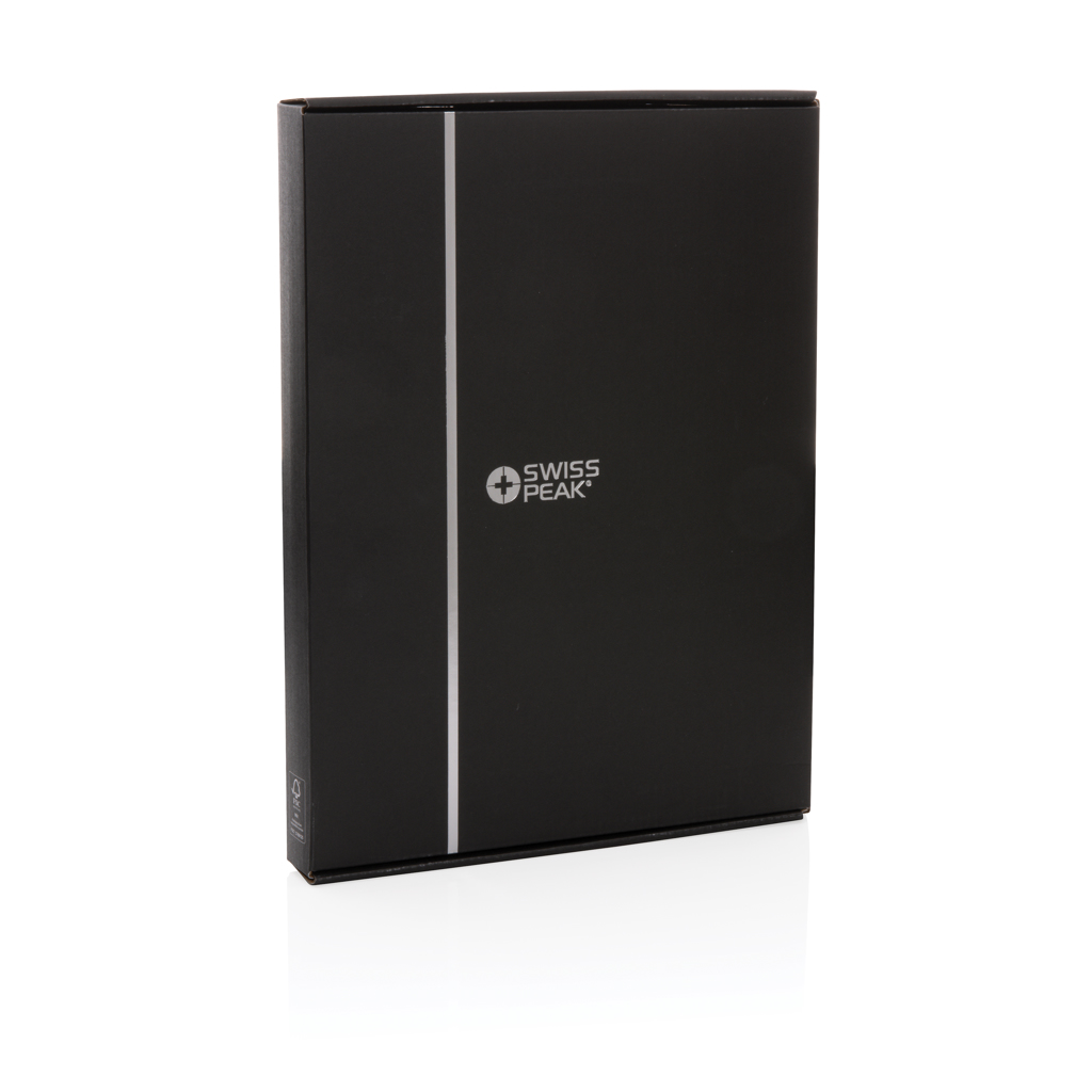 Die Swiss Peak Heritage Kollektion spricht die Sprache moderner Eleganz. Das Portfolio mit recyceltem PU-Cover und Reißverschluss hat einen Tablet- / Telefonständer, Visitenkartenfächer, sowie Fächer für Ihre Notizen und Papiere und noch eine Stiftschlaufe. Mit liniertem 20-Blatt-A4-Steinpapier-Notizblock. wird aus RCS (Recycled Claim Standard)-zertifiziert recycelten Materialien hergestellt. Die RCS-Zertifizierung gewährleistet eine vollständig zertifizierte Lieferkette der recycelten Materialien. Hergestellt aus RCS-zertifiziertem, recyceltem PU. Gesamter Recyclinganteil: 9%, bezogen auf das Gesamtgewicht des Artikels. PVC-frei.