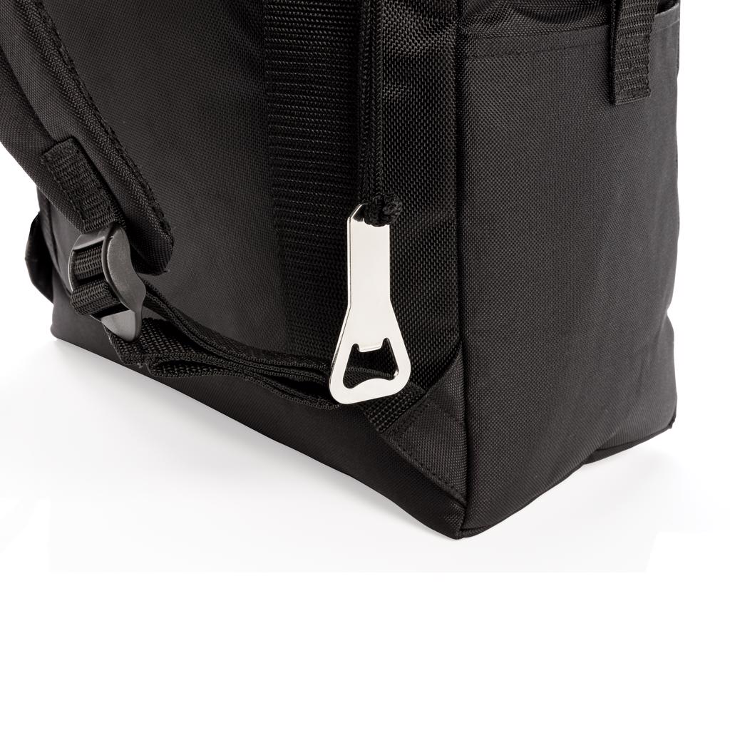 Kühltasche aus 1680D und 600D Polyester mit extra großem Hauptfach, zusätzlicher Vortasche und doppelt verstärkten Henkeln sowie inkl. Flaschenöffner. Für bis zu 28 Dosen. PEVA Isolierung.