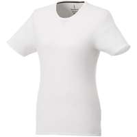 Damen-T-Shirt aus glattem Jersey, gefertigt aus weicher 100% Baumwolle, 160g / m². Tubuläres Design ohne Seitennähte und mit rundem Halsausschnitt. Erhältlich in Weiß und in den Größen S, M, L, XL, XXL.
