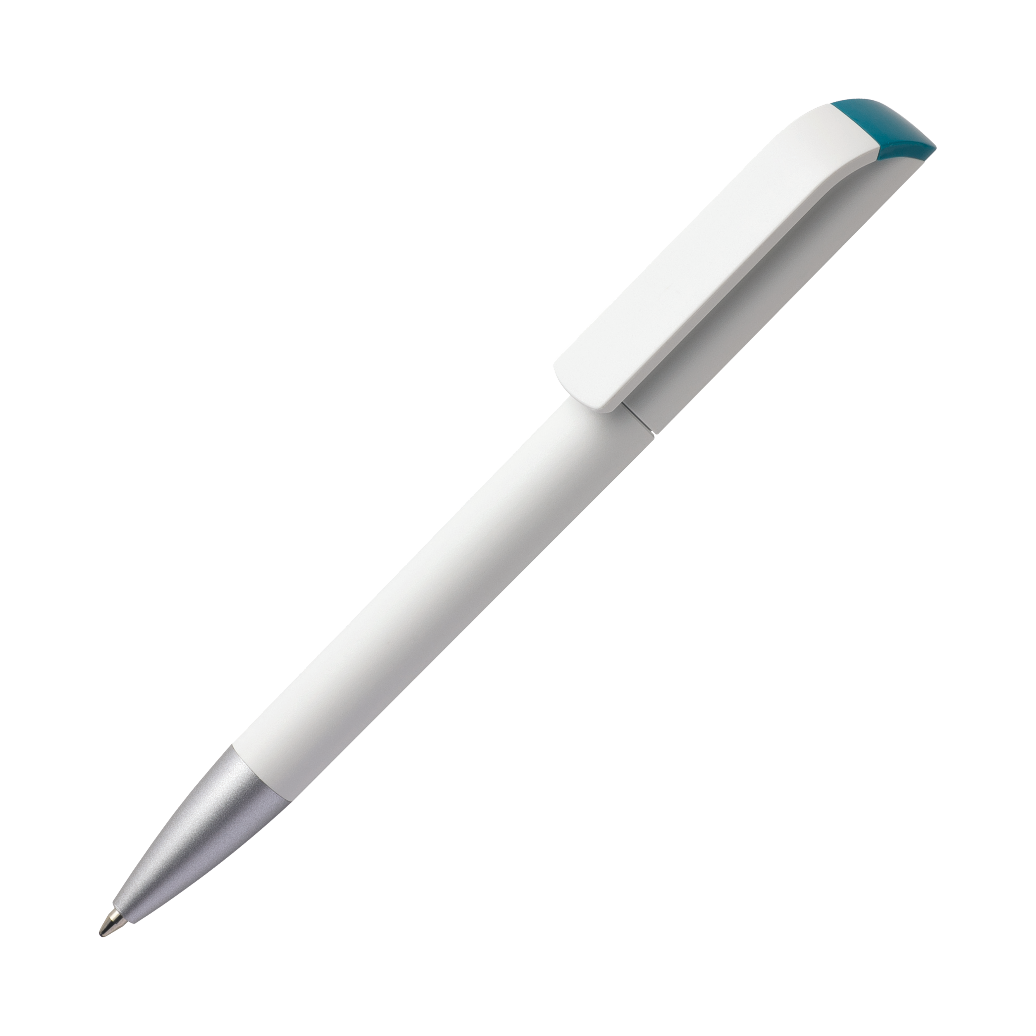 TAG TA1 MATT AL B Kugelschreiber Maxema, Design in Reinform - Im Kugelschreiber mit Drehmechanik TAG ist es Maxema gelungen, schlichte Eleganz und Funktion in Harmonie zu vereinen Die harmonische Linie des Gehäuses und der auffallend kräftig gebogene Clip sind aus hochwertigem ABS in einer weißen Mattversion gefertigt und werden ergänzt durch eine matte Metallspitze. Hervorsticht die glänzende Clip-Basis, die in 17 verschiedenen Farben lieferbar ist. Der Kugelschreiber ist ausgestattet mit einer blauschreibenden Großraummine.