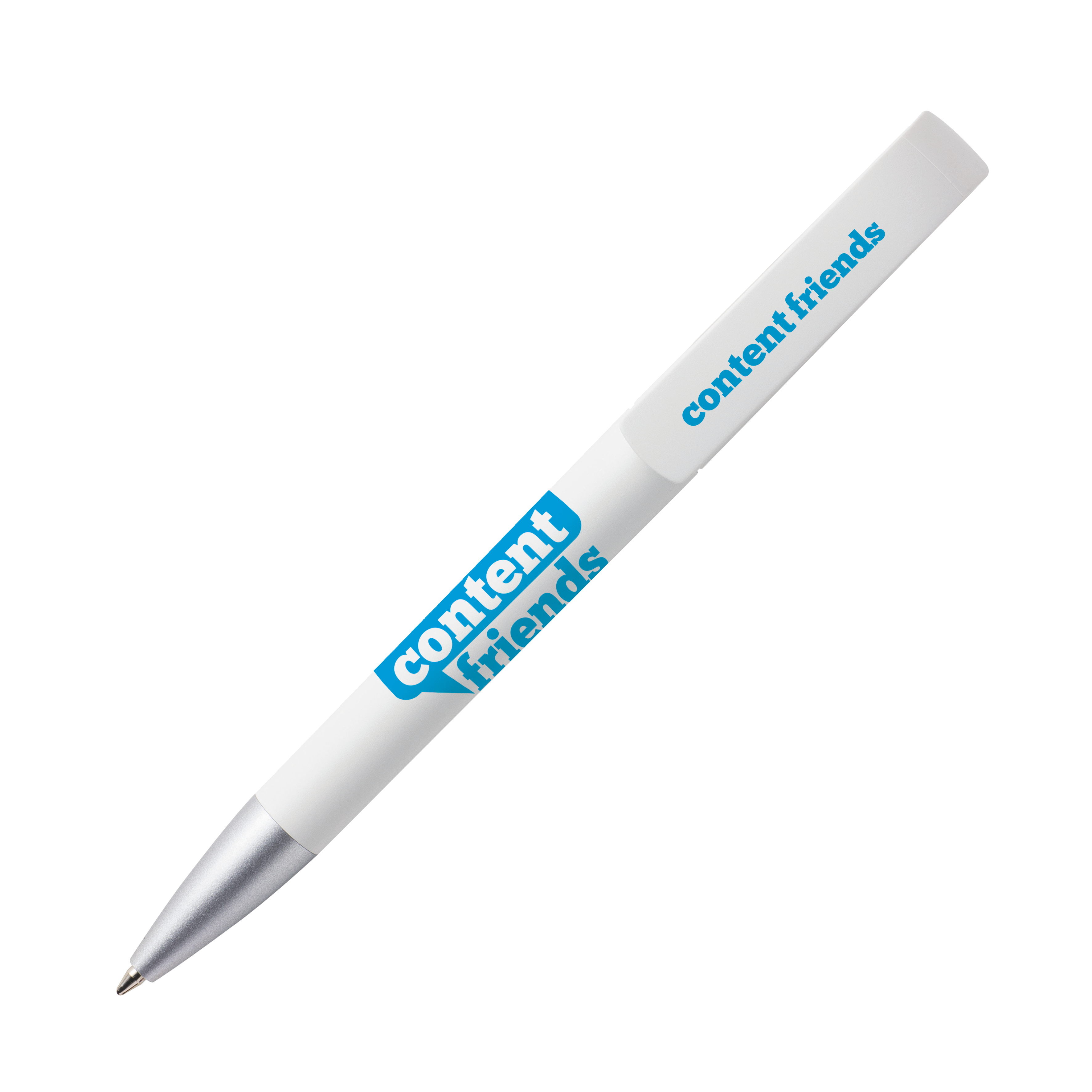 TAG TA1 MATT AL B Kugelschreiber Maxema, Design in Reinform - Im Kugelschreiber mit Drehmechanik TAG ist es Maxema gelungen, schlichte Eleganz und Funktion in Harmonie zu vereinen Die harmonische Linie des Gehäuses und der auffallend kräftig gebogene Clip sind aus hochwertigem ABS in einer weißen Mattversion gefertigt und werden ergänzt durch eine matte Metallspitze. Hervorsticht die glänzende Clip-Basis, die in 17 verschiedenen Farben lieferbar ist. Der Kugelschreiber ist ausgestattet mit einer blauschreibenden Großraummine.