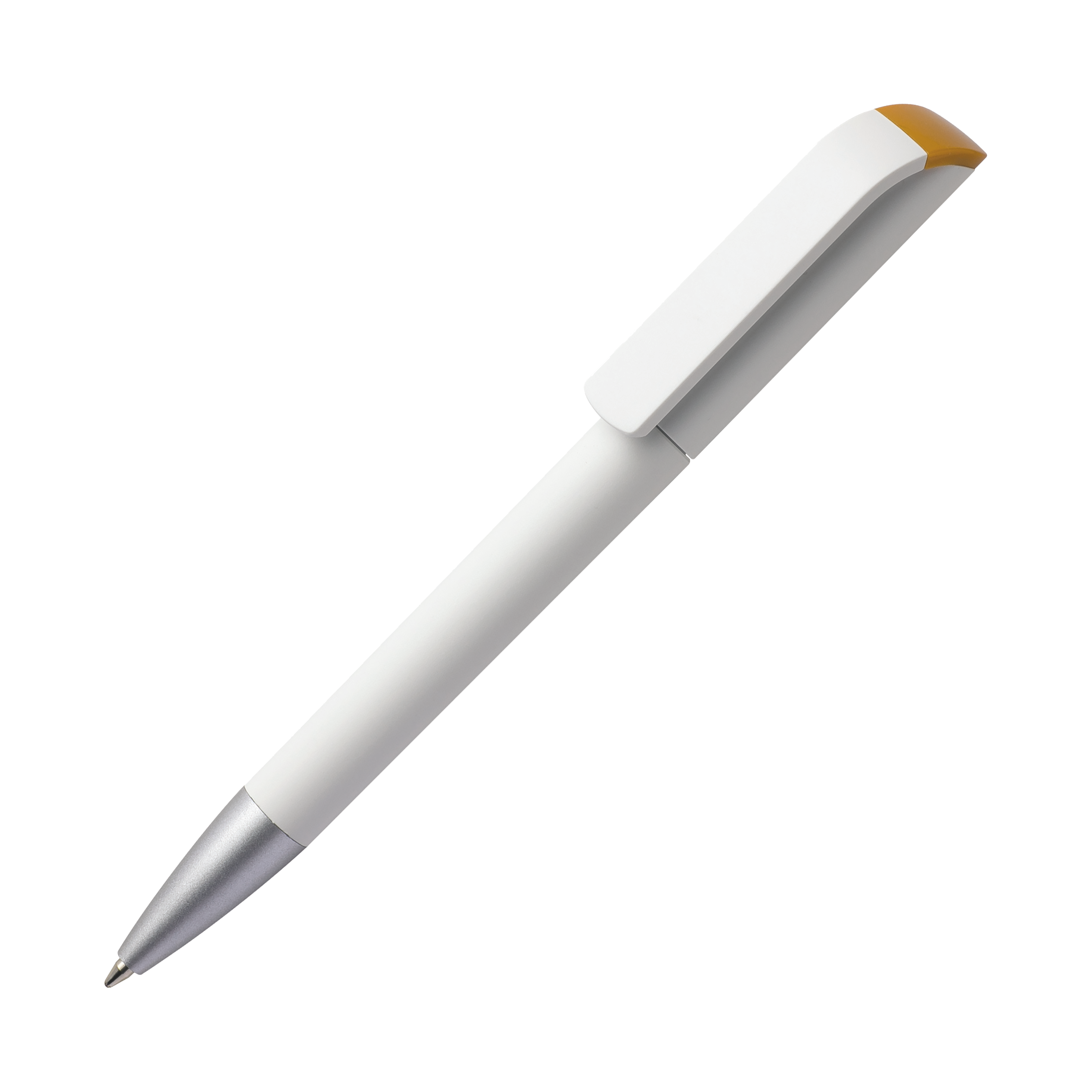 TAG TA1 MATT AL B Kugelschreiber Maxema, Design in Reinform - Im Kugelschreiber mit Drehmechanik TAG ist es Maxema gelungen, schlichte Eleganz und Funktion in Harmonie zu vereinen Die harmonische Linie des Gehäuses und der auffallend kräftig gebogene Clip sind aus hochwertigem ABS in einer weißen Mattversion gefertigt und werden ergänzt durch eine matte Metallspitze. Hervorsticht die glänzende Clip-Basis, die in 17 verschiedenen Farben lieferbar ist. Der Kugelschreiber ist ausgestattet mit einer blauschreibenden Großraummine.