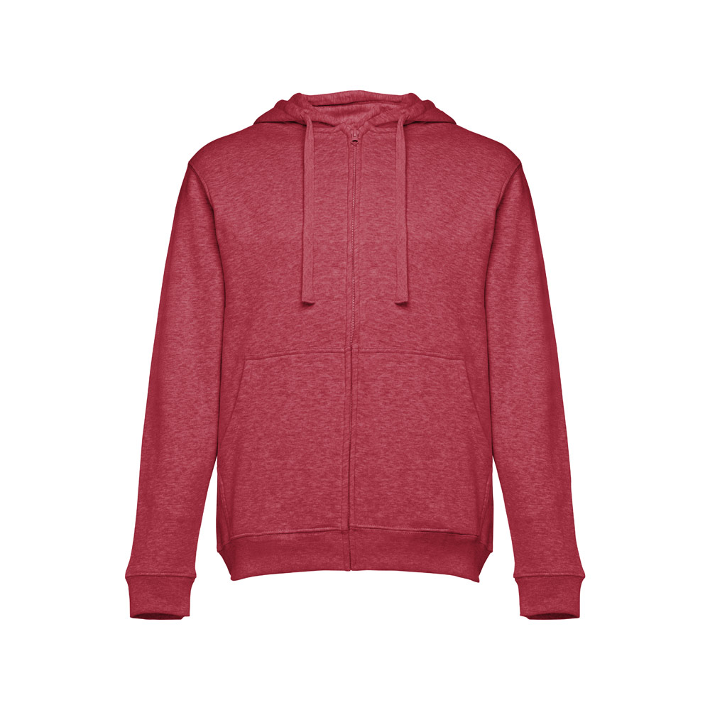 Herren Sweatjacke aus 50% Baumwolle und 50% Polyester (320g / m²) mit Reißverschluss und gefütterter Kapuze mit Kordelzug. Kardiert mit 2 Kängurutaschen, einem verdeckten Kunststoffreißverschluss und einem gerripten Bund. Größen: S, M, L, XL, XXL