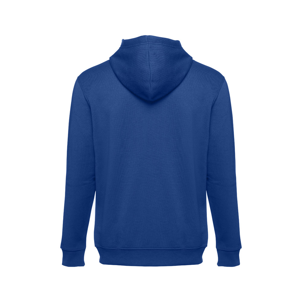 Herren Sweatjacke aus 50% Baumwolle und 50% Polyester (320g / m²) mit Reißverschluss und gefütterter Kapuze mit Kordelzug. Kardiert mit 2 Kängurutaschen, einem verdeckten Kunststoffreißverschluss und einem gerripten Bund. Größen: S, M, L, XL, XXL