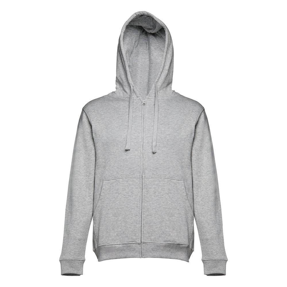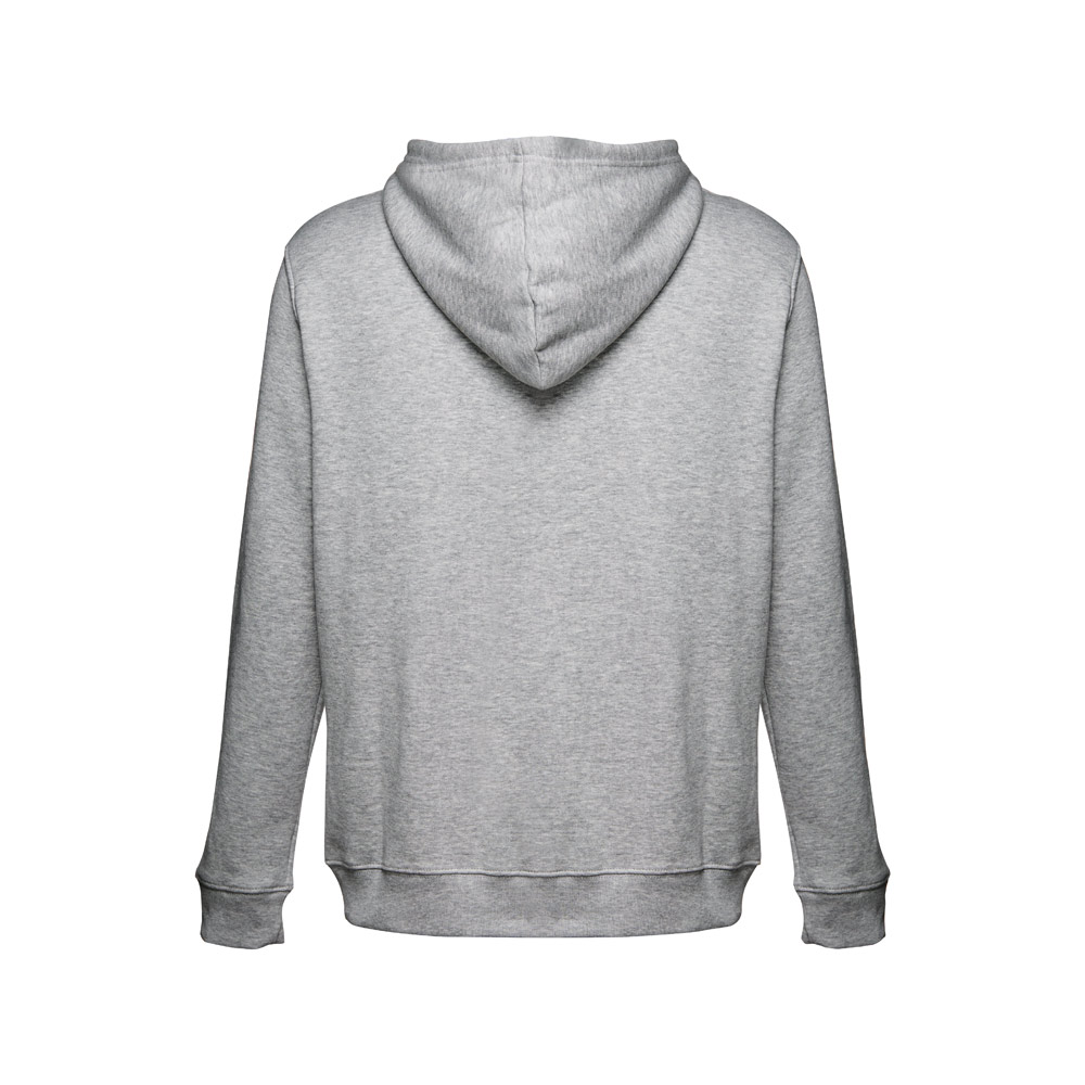 Herren Sweatjacke aus 50% Baumwolle und 50% Polyester (320g / m²) mit Reißverschluss und gefütterter Kapuze mit Kordelzug. Kardiert mit 2 Kängurutaschen, einem verdeckten Kunststoffreißverschluss und einem gerripten Bund. Größen: S, M, L, XL, XXL