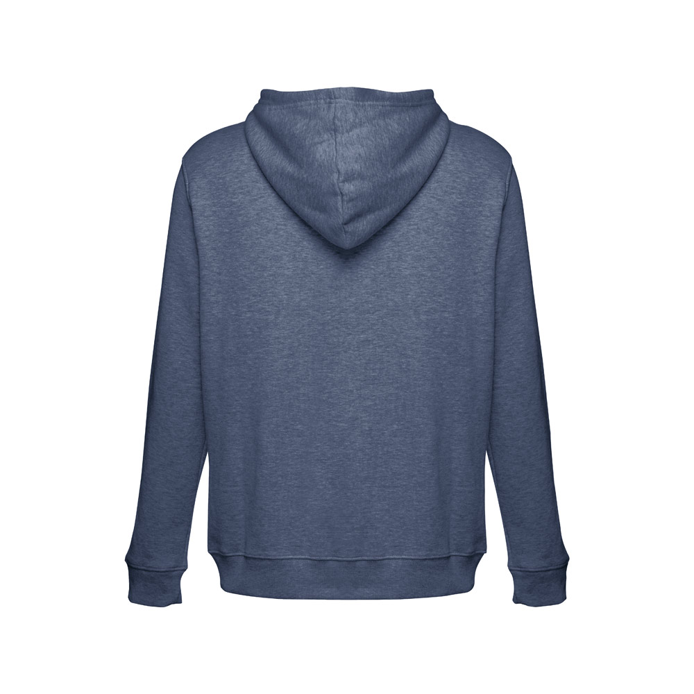 Herren Sweatjacke aus 50% Baumwolle und 50% Polyester (320g / m²) mit Reißverschluss und gefütterter Kapuze mit Kordelzug. Kardiert mit 2 Kängurutaschen, einem verdeckten Kunststoffreißverschluss und einem gerripten Bund. Größen: S, M, L, XL, XXL