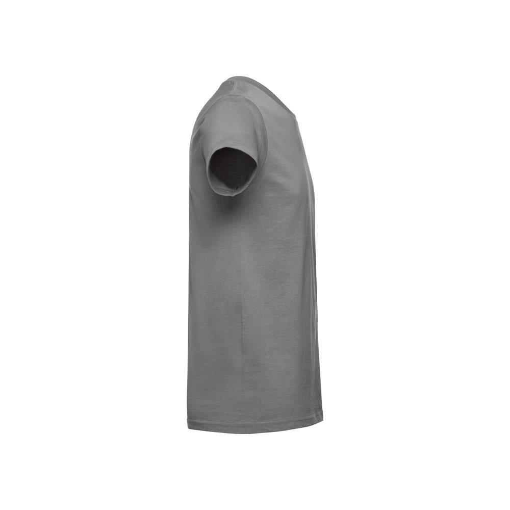 Herren T-Shirt aus Strickjersey 100% Baumwolle (190 g / m²) mit kardiertem Baumwollfaden in Tubular-Form. Bei der Farbe 183 bestehend aus 90% Baumwolle und 10% Viskose. Mit geripptem Kragen in 1 x 1 Ripp, Jersey-Verstärkung und Doppelnaht an Ärmeln und Saum. Größe: 3XL