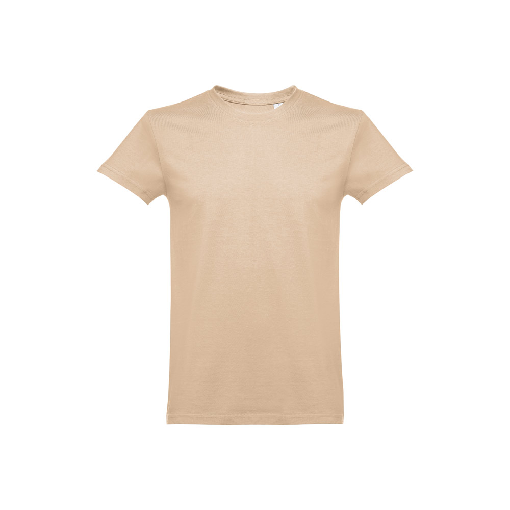Herren T-Shirt aus 100% Strickjersey und Baumwolle (190g / m²) mit kardiertem Baumwollfaden in Tubular-Form. Mit geripptem Kragen in 1 x 1 Ripp, Jersey-Verstärkung und Doppelnaht an Ärmeln und Saum. Bei der Farbe 183 bestehend aus 90% Baumwolle und 10% Viskose. Größen: XS, S, M, L, XL, XXL