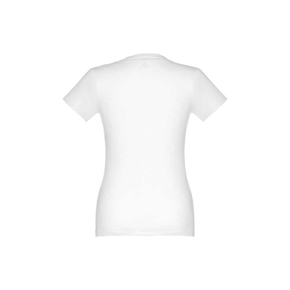Damen T-shirt aus 100% Strickjersey und Baumwolle (190g / m²), tailliert mit kardiertem Baumwollfaden, dünnem Jersey-Kragen mit Satin-Verstärkungsband und Doppelnaht an Ärmeln und Saum. Größen: S, M, L, XL, XXL