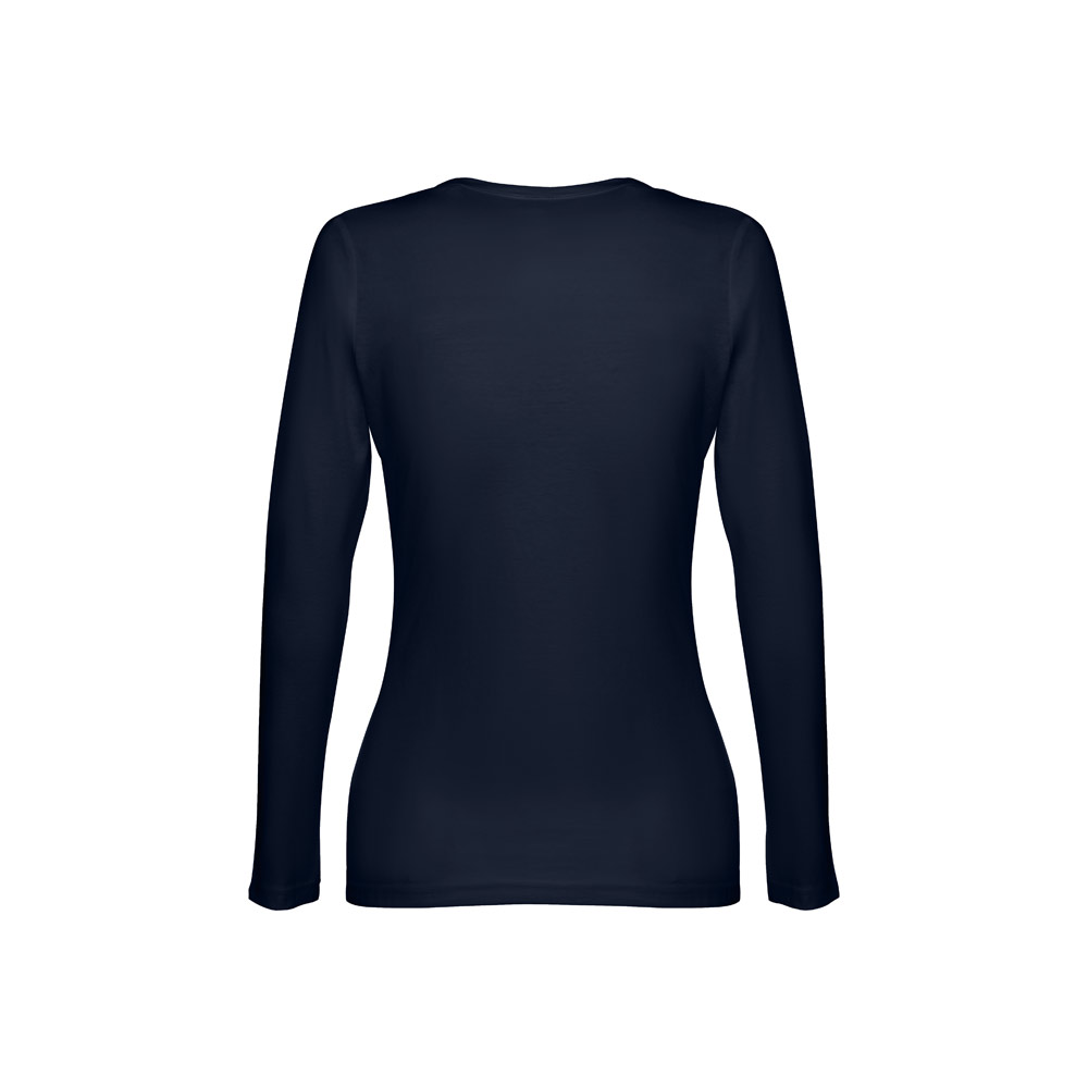 Damen Langarmshirt aus 100% Strickjersey und Baumwolle (150g / m²), tailliert mit kardiertem Baumwollfaden. Bei den Farben 194, 195 bestehend aus 60% Baumwolle und 40% Polyester und Farbe 183 bestehend aus 90% Baumwolle und 10% Viskose, mit Jersey-Kragen, Doppelnaht an Ärmeln und Saum. Größen: S, M, L, XL, XXL