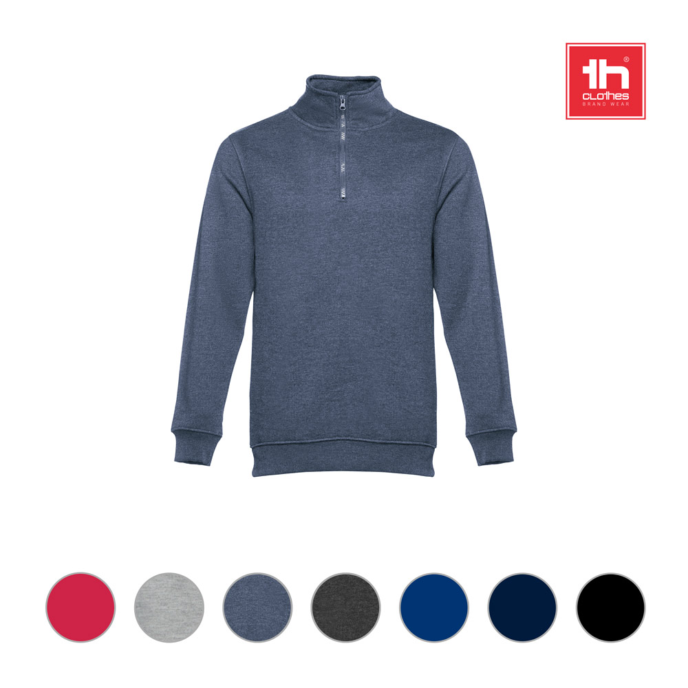 Sweatshirt aus 50% Baumwolle und 50% Polyester (320g / m²). Kardiert mit einem farbig abgestimmten Reißverschluss (1/4) und gerriptem Bund. Größen: S, M, L, XL, XXL
