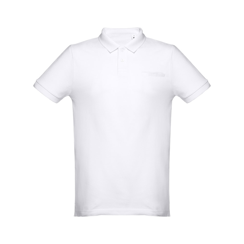 Herren Poloshirt aus Piqué Stoff 100% kardierter Baumwolle (195g / m²). Mit geripptem Kragen und Ärmelbündchen, einem Verstärkungsband am Kragen, verstärkte Knopfleiste mit 2 farblich abgestimmten Knöpfen und einem Ersatzknopf an der Innennaht. Unten mit seitlichen Öffnungen. Paspeltasche auf der Brust. Größen: S, M, L, XL, XXL