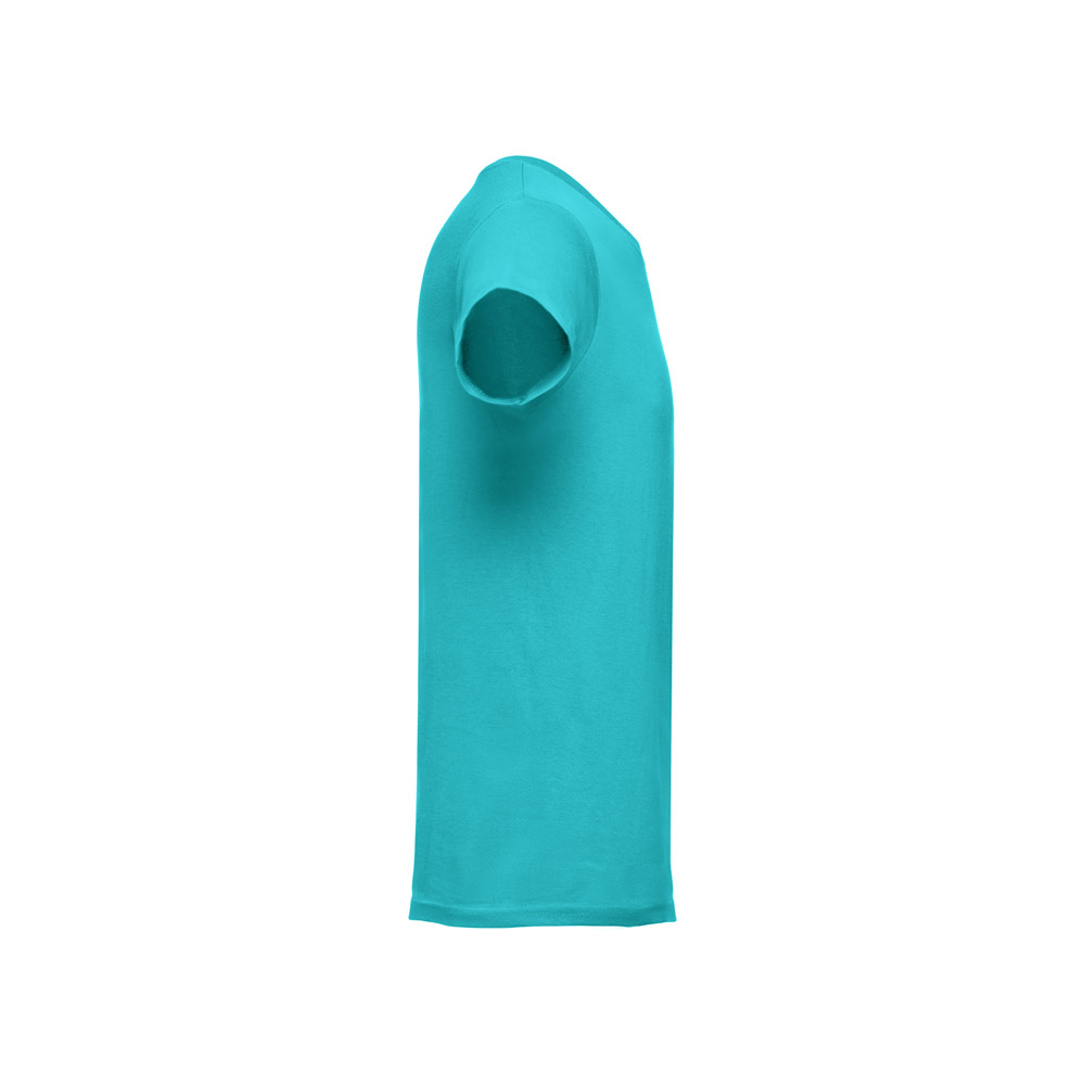 Herren T-Shirt aus 100% Strickjersey und Baumwolle (150g / m²) mit kardiertem Baumwollfaden in Tubular-Form. Mit geripptem Kragen in 1 x 1 Ripp, Jersey-Verstärkung und Doppelnaht an Ärmeln und Saum. Bei der Farbe 183 bestehend aus 90% Baumwolle und 10% Viskose. Größen: XS, S, M, L, XL, XXL