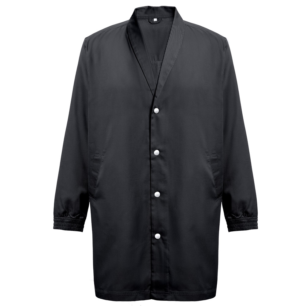 Arbeitskittel aus 20% Baumwolle und 80% Polyester (190g / m²), unisex. Eleganter, moderner und stilvoller Schnitt mit 2 Seitentaschen, elastische Bündchen und Druckknöpfen. Rückenöffnung für mehr Bewegungsfreiheit. Größen: S, M, L, XL, XXL, 3XL