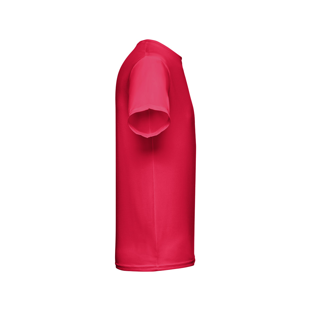 Herren Sport T-Shirt aus 100% Strickjersey und Polyester (130g / m²), dieser Stoff ist bequem und atmungsaktiv. Dieses T-Shirt hat ein Verstärkungsband am Kragen und eine Doppelnaht an Ärmeln und Saum. Größen: S, M, L, XL, XXL