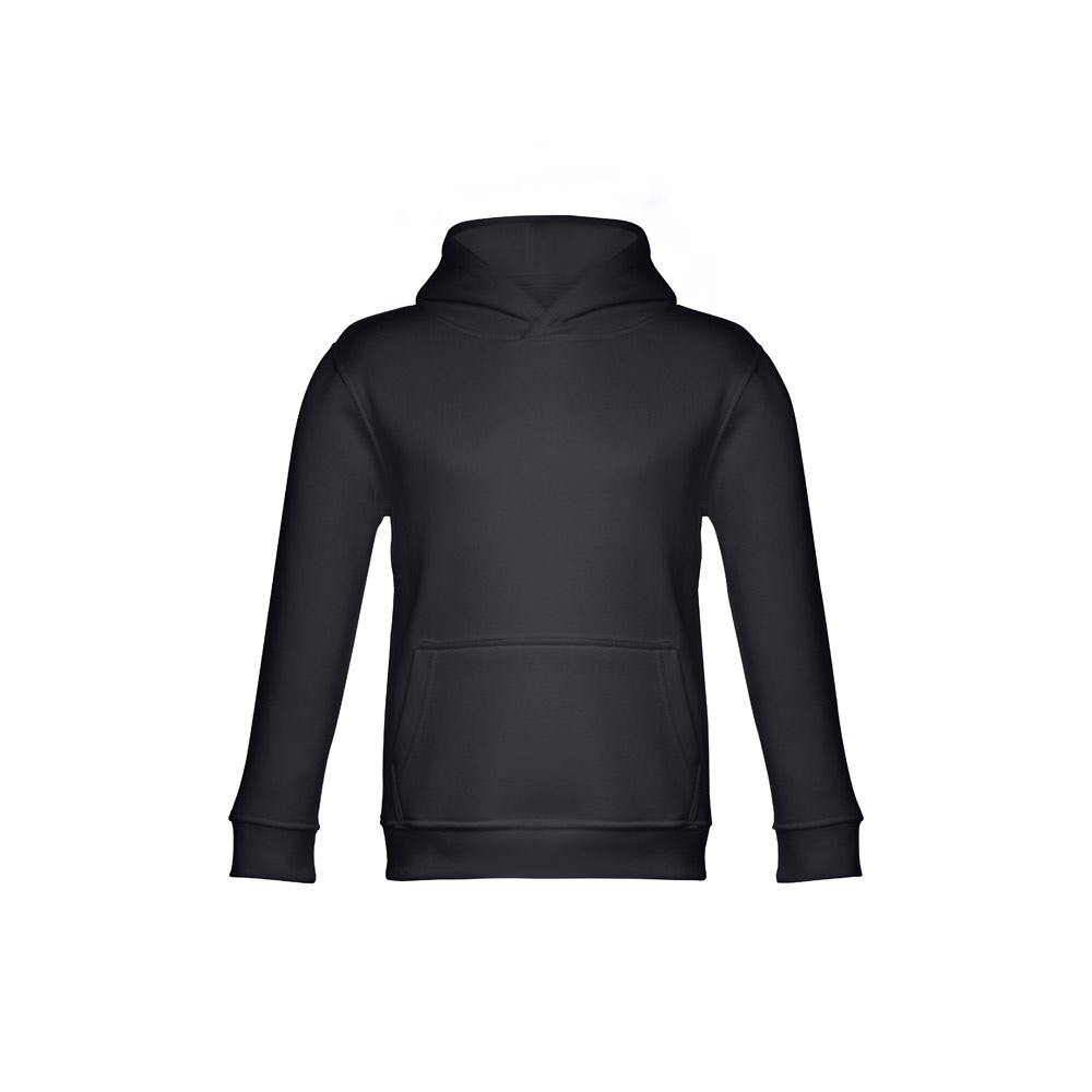 Kinder Sweatshirt aus 50% Baumwolle und 50% Polyester (320g / m²), unisex mit Kapuze in Jersey. Innen kardiert, Ripp 1 x 1 an Ärmelbündchen und Bund und einer Kängurutasche. Kapuze in Übereinstimmung mit den Sicherheitsstandards der Europäischen Union. Größen: 2, 4, 6, 8, 10, 12