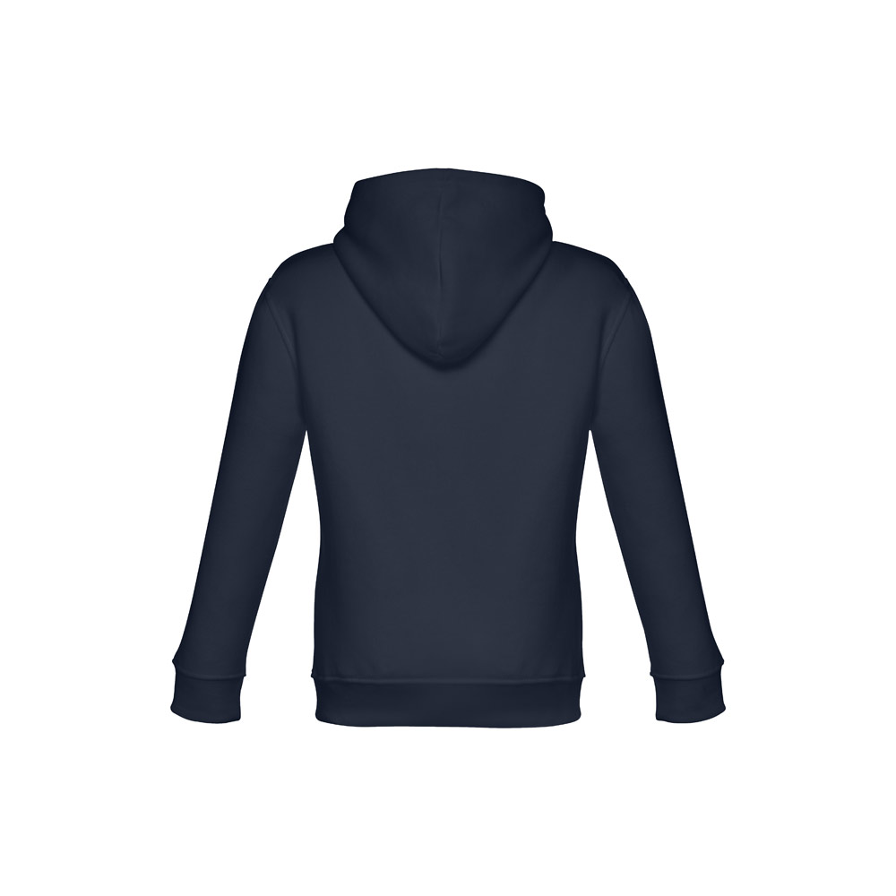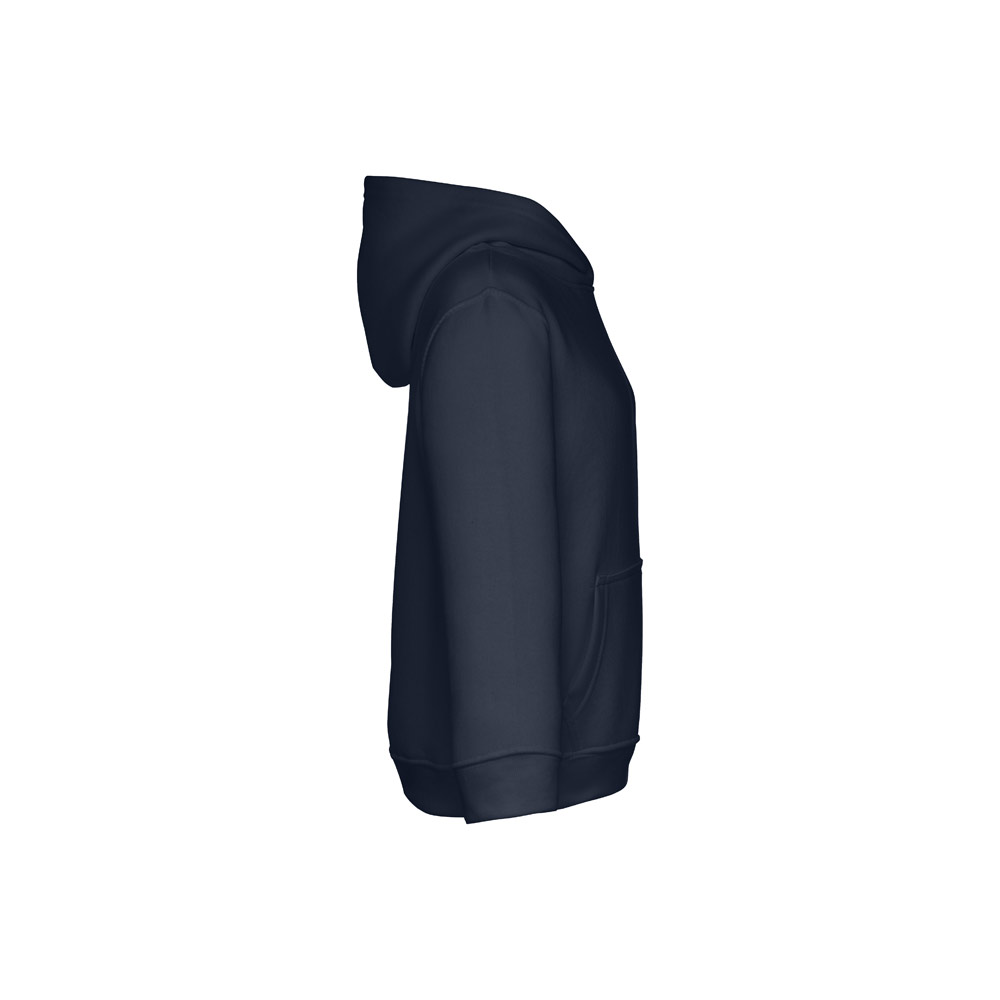 Kinder Sweatshirt aus 50% Baumwolle und 50% Polyester (320g / m²), unisex mit Kapuze in Jersey. Innen kardiert, Ripp 1 x 1 an Ärmelbündchen und Bund und einer Kängurutasche. Kapuze in Übereinstimmung mit den Sicherheitsstandards der Europäischen Union. Größen: 2, 4, 6, 8, 10, 12