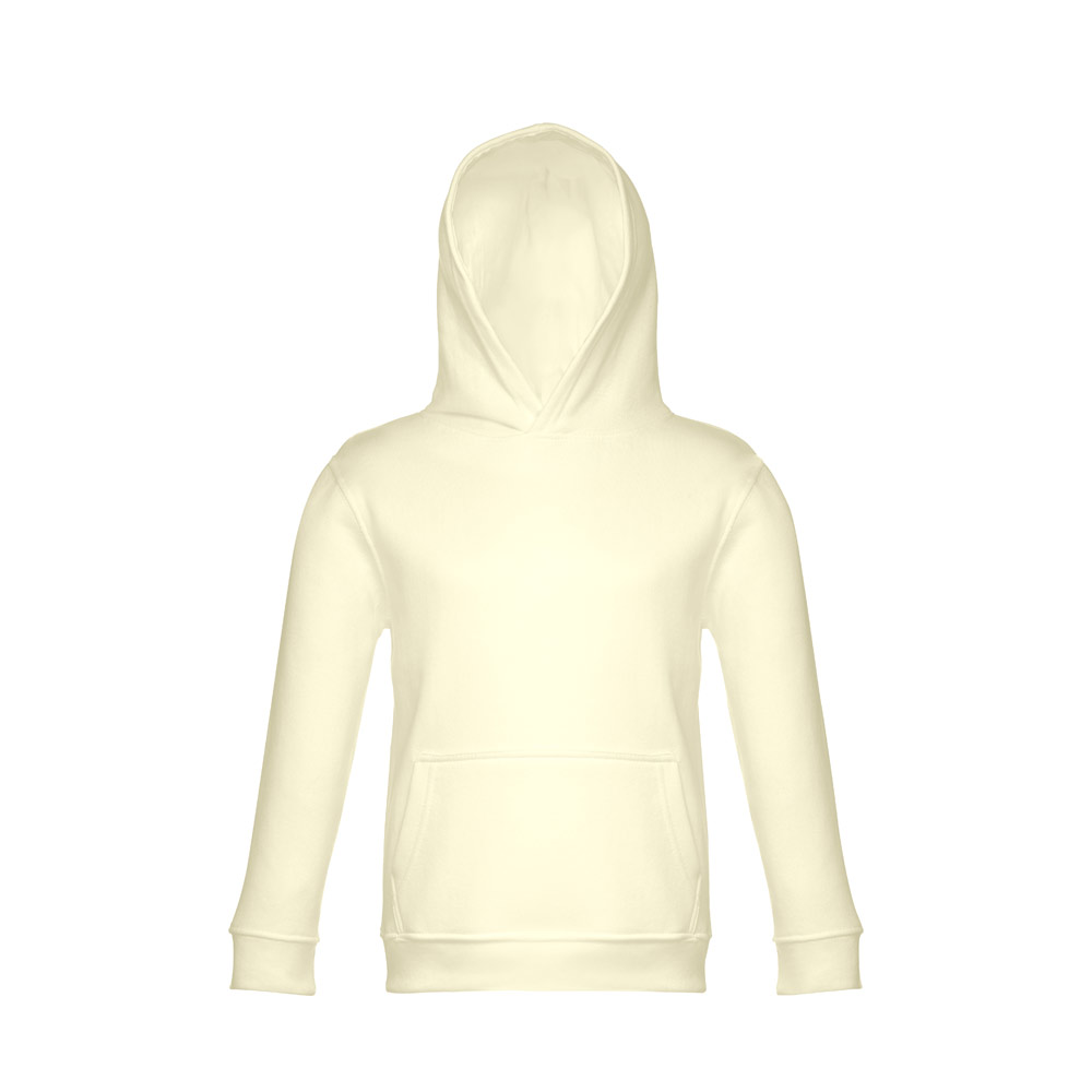 Kinder Sweatshirt aus 50% Baumwolle und 50% Polyester (320g / m²), unisex mit Kapuze in Jersey. Innen kardiert, Ripp 1 x 1 an Ärmelbündchen und Bund und einer Kängurutasche. Kapuze in Übereinstimmung mit den Sicherheitsstandards der Europäischen Union. Größen: 2, 4, 6, 8, 10, 12