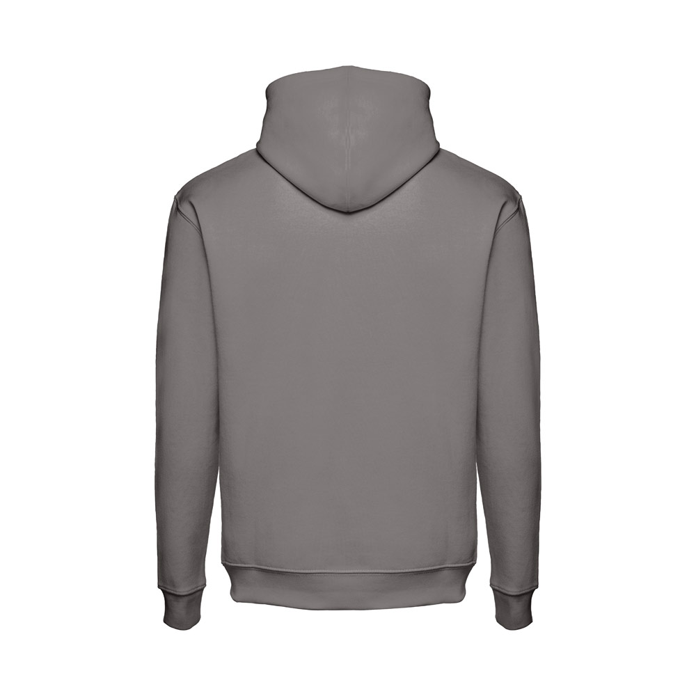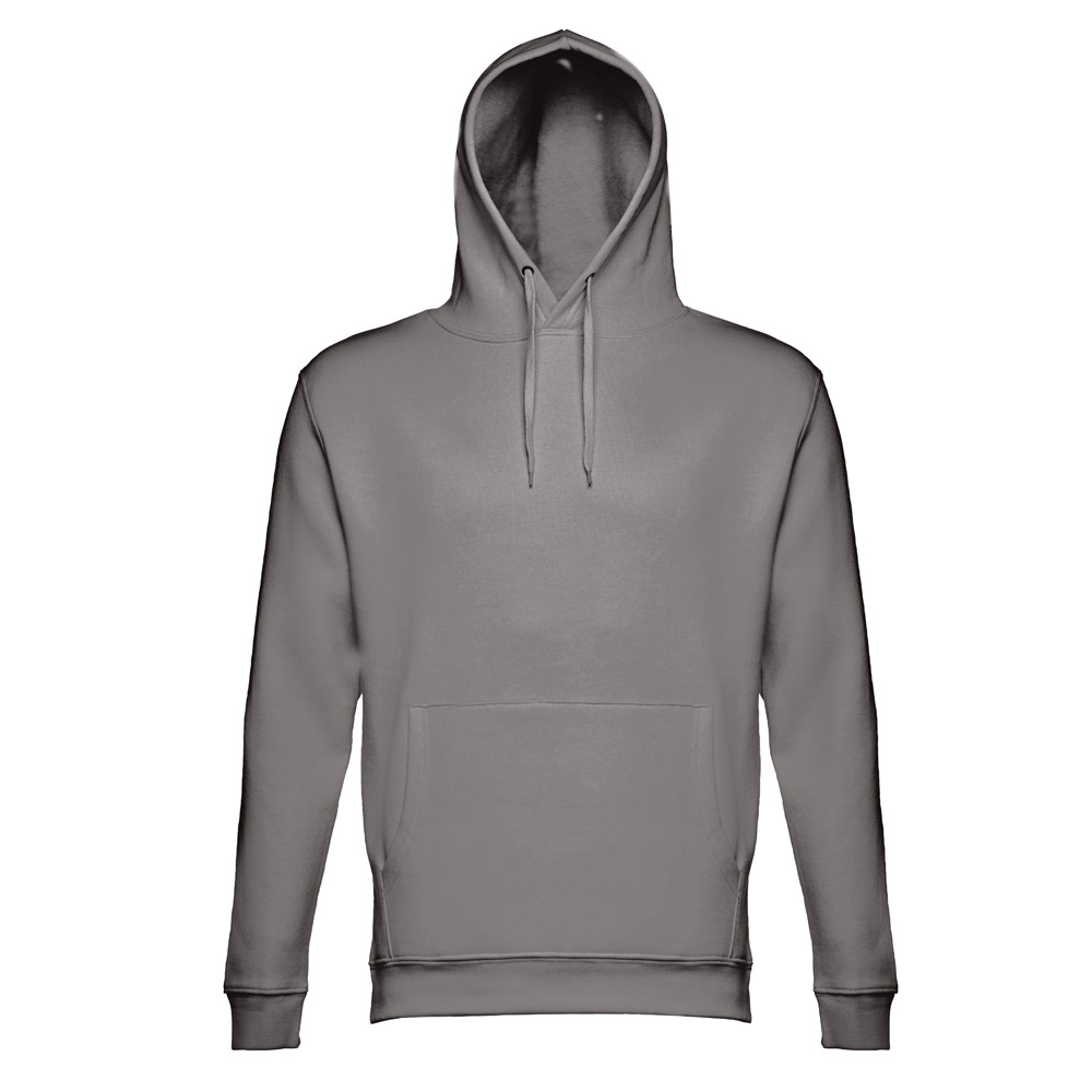 Sweatshirt aus 50% Baumwolle und 50% Polyester (320g / m²), unisex mit einer Kapuze mit Kordelzug. Innen kardiert, 1 x 1 Ripp, Bund an Ärmel und einer Kängurutasche. Größen: XS, S, M, L, XL, XXL