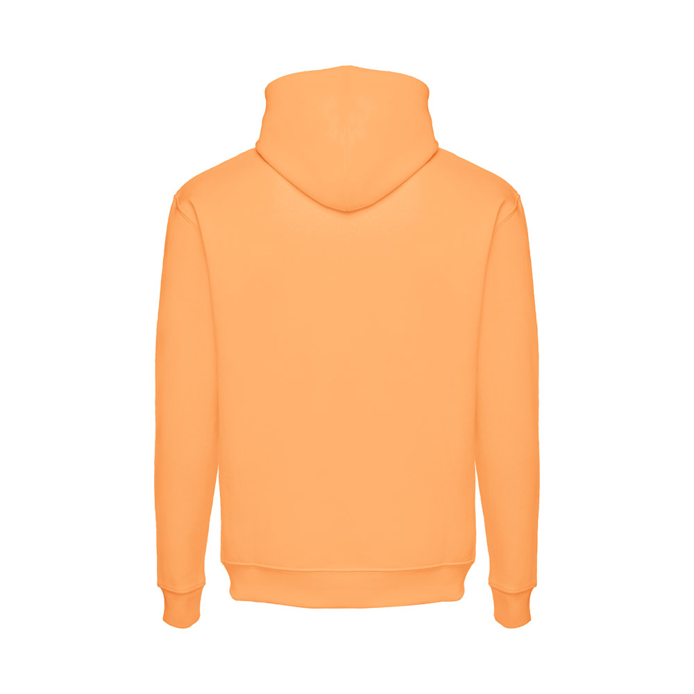Sweatshirt aus 50% Baumwolle und 50% Polyester (320g / m²), unisex mit einer Kapuze mit Kordelzug. Innen kardiert, 1 x 1 Ripp, Bund an Ärmel und einer Kängurutasche. Größen: XS, S, M, L, XL, XXL