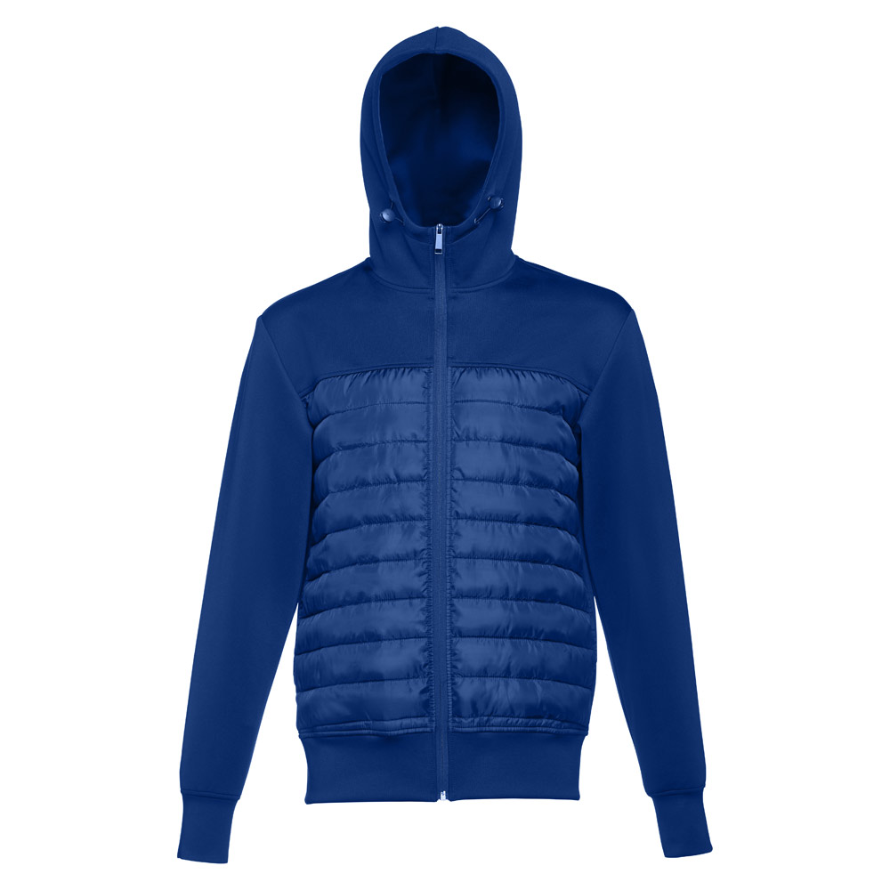 Herren Kapuzenjacke aus 300T Taft (280g / m²), 95% Polyester und 5% Elasthan. Der Schnitt und die Kombination unterschiedlicher Texturen verleihen dieser Jacke ein modernes Design. Die Kapuze kann mit den Stoppern angepasst werden. Die Innentaschen ermöglichen eine praktische Aufbewahrung. Größen: S, M, L, XL, XXL